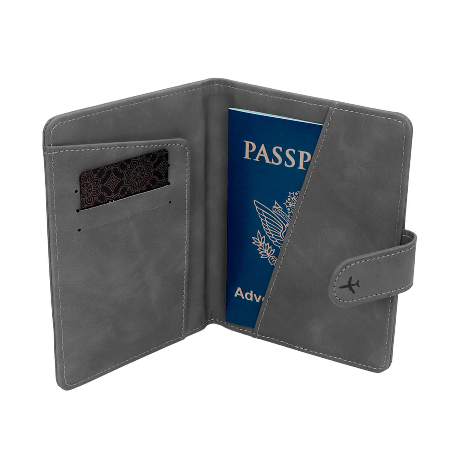 PORTOS Porta pasaporte de curpiel con organizador de tarjetas y broche magnético.