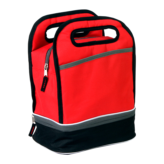 Lonchera Peva. - Lonchera fabricada en poliéster 600D con forro de PEVA y compartimento doble, asas en la parte superior, con detalles en color gris y negro, que le añaden un toque de personalidad  y estilo.