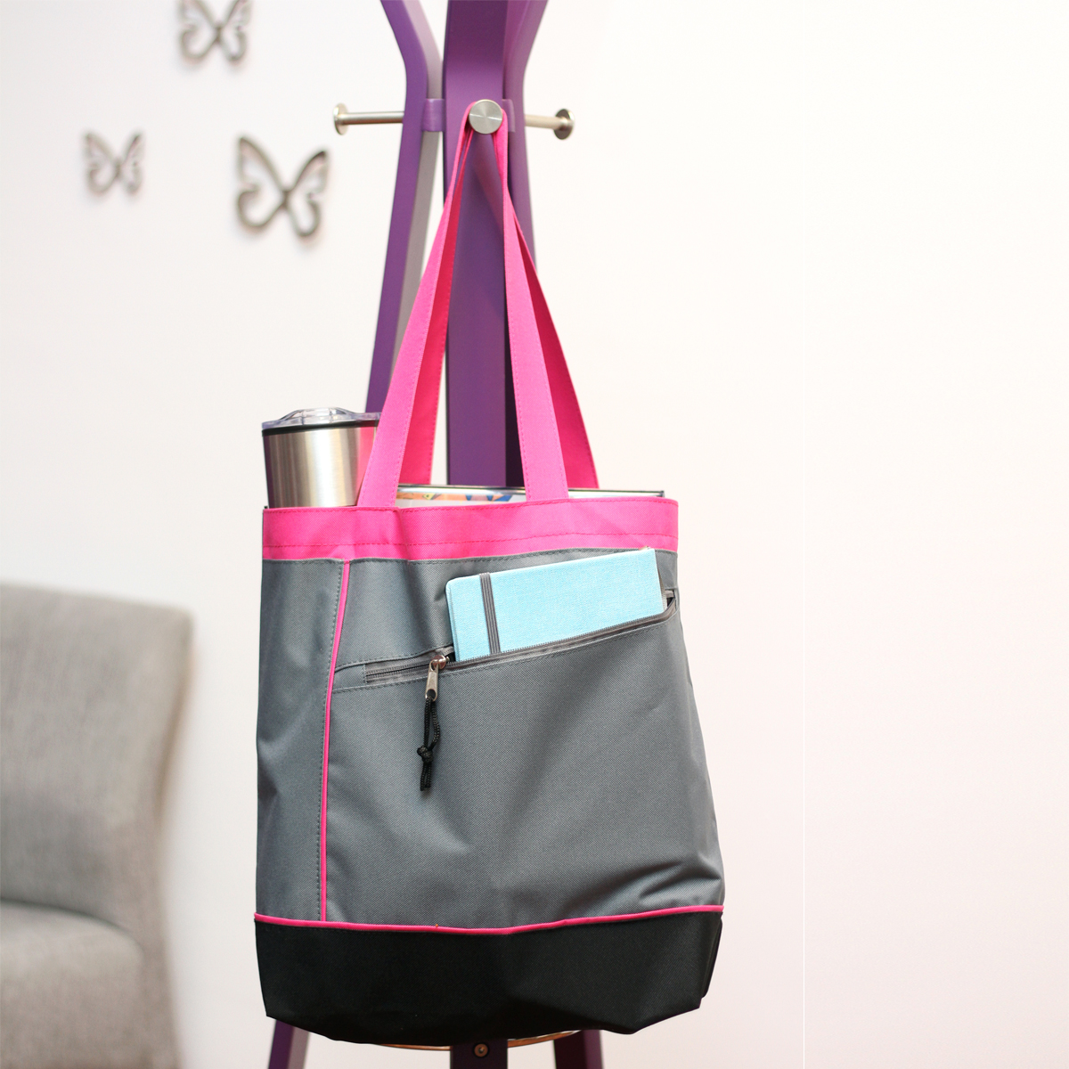 Bolsa multiusos Albany. - Bolsa multiusos con bolsa al frente de cierre, fabricada en poliéster y con 2 asas de gran resistencia.