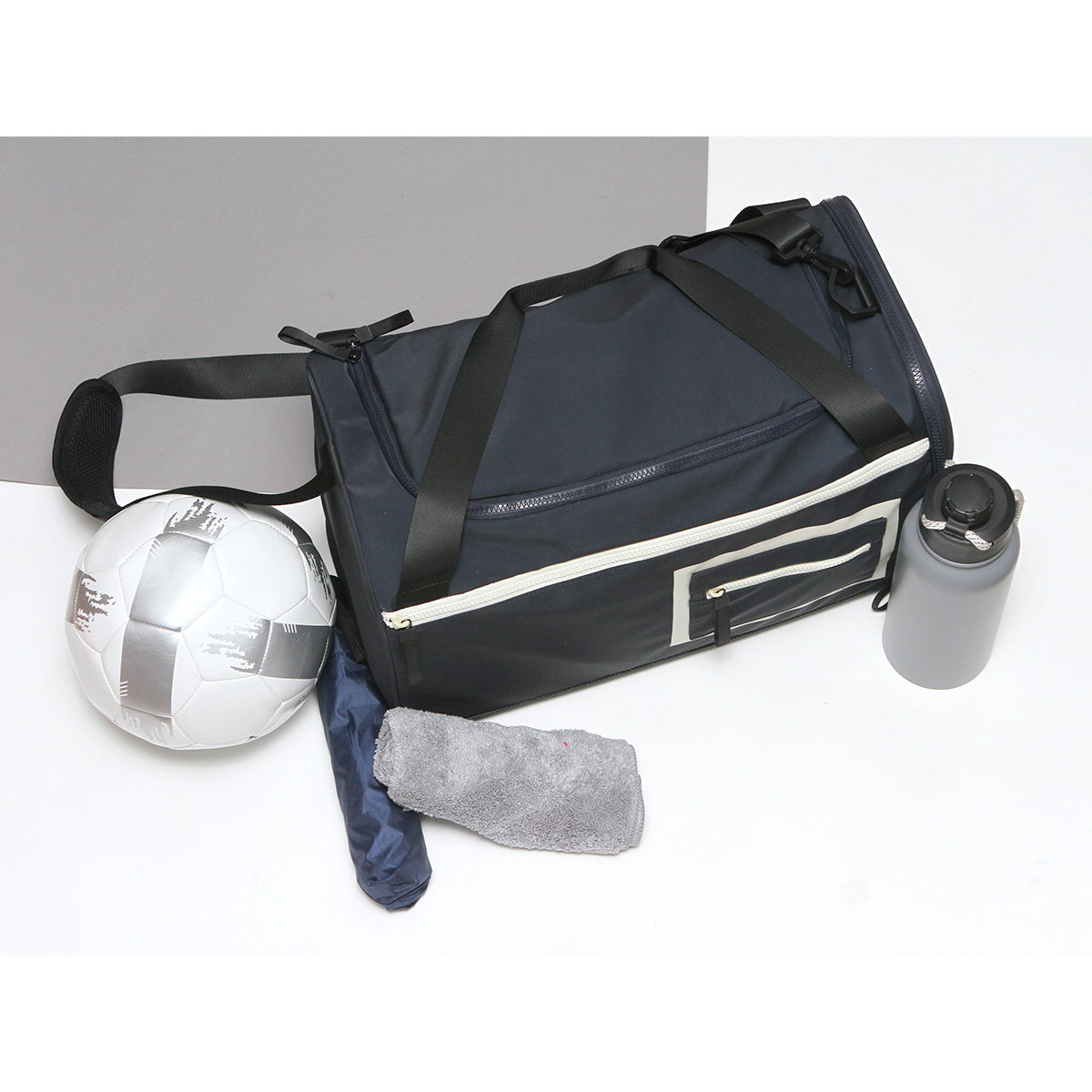 Maleta Plasir. - Maleta tipo duffel fabricada en poliéster cuenta con un compartimento principal con forro completo igualmente de poliéster y bolsillo elástico, un bolsillo frontal con cremallera y un bolsillo pequeño con cremallera, un compartimento lateral, asas de cincha en la parte superior correa de hombro ajustable.