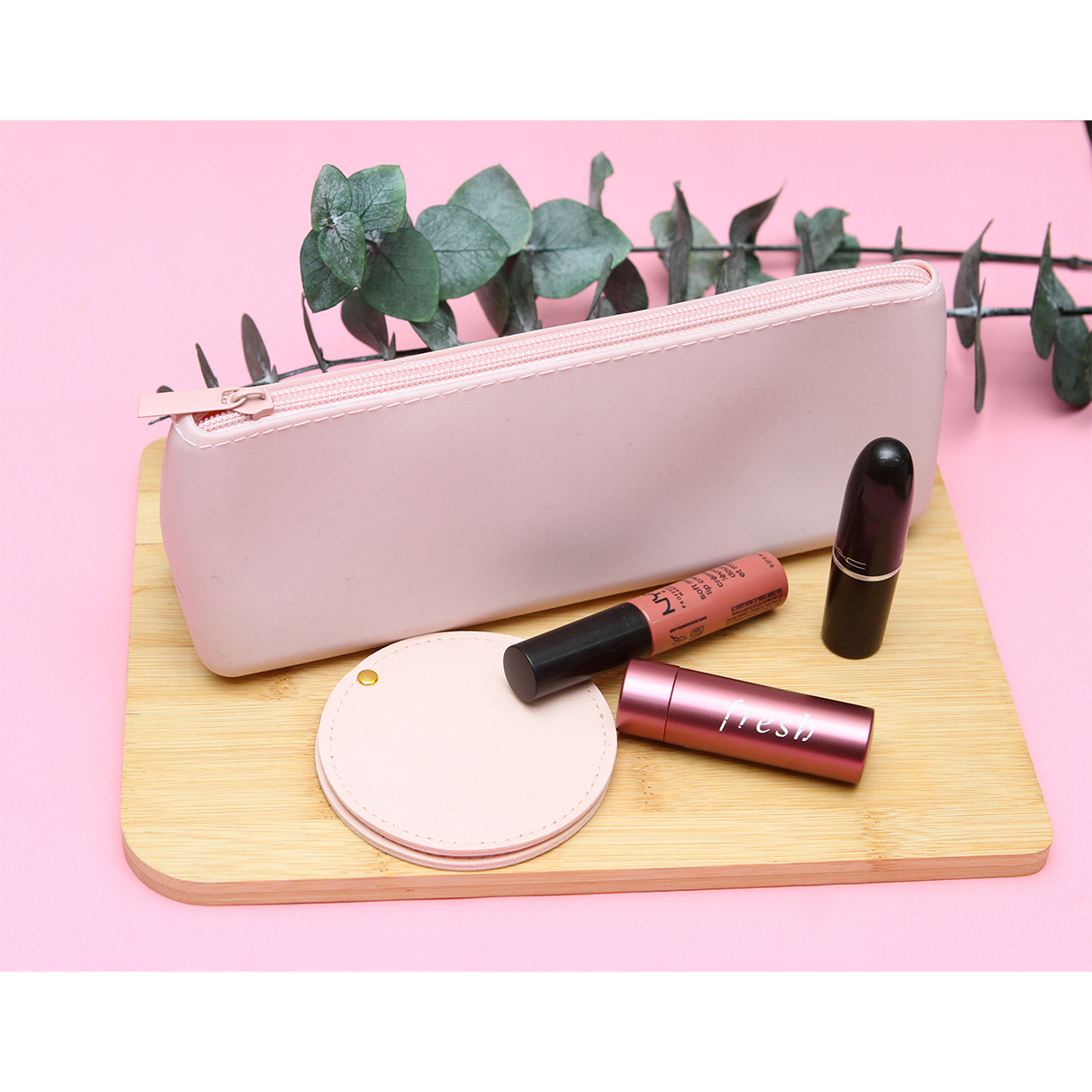 Lapicera Mennecy. - Lapicera fabricada en silicón con acabado rubber. Cuenta con un compartimento principal con cierre. Este artículo gracias a su tipo de material es moldeable y su tamaño compacto la hace bastante útil y fácil de transportar.