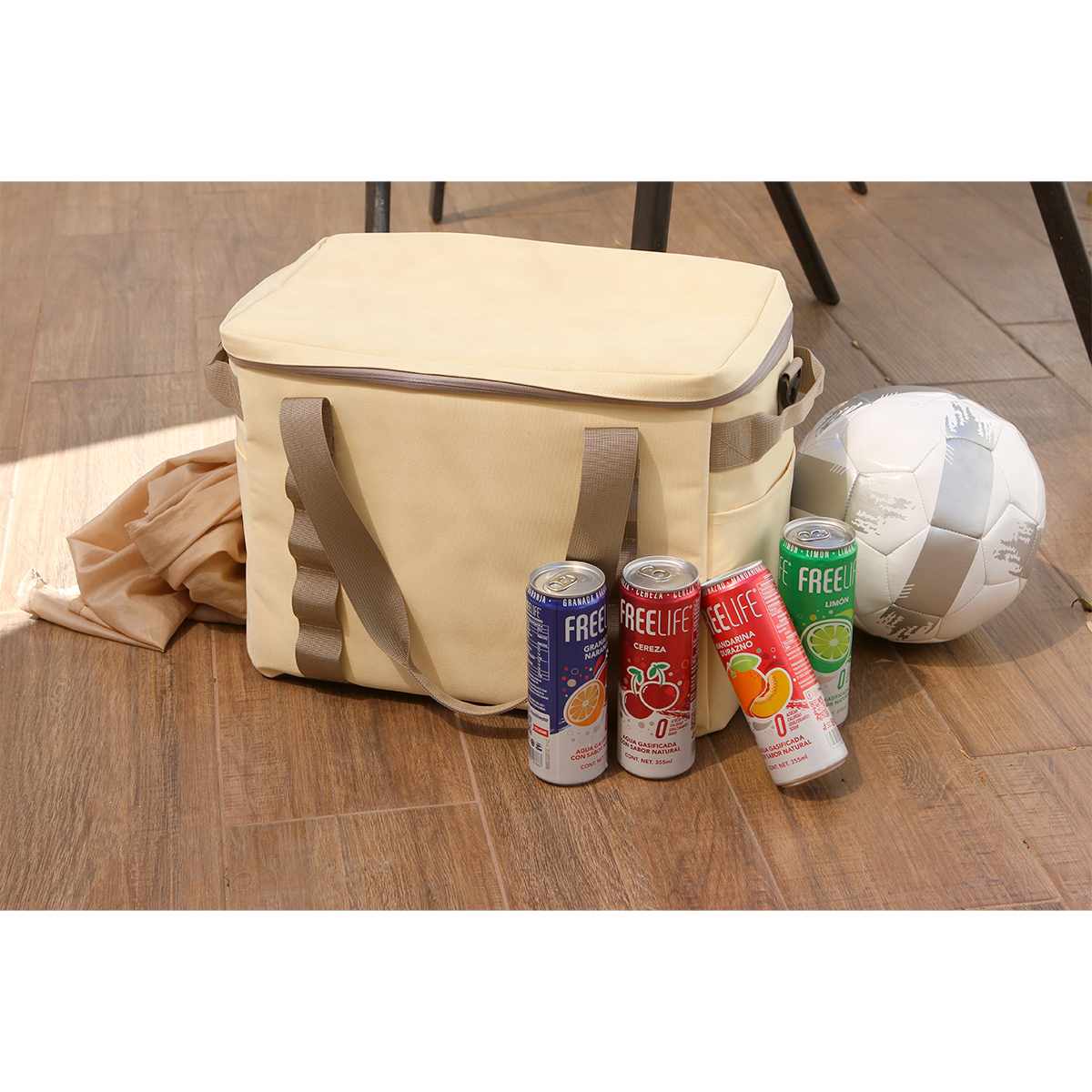 Hielera Shegra. - Hielera portatil fabricada en -- tejido tipo Oxford 600D con forro en polietileno, con gran capacidad de almacenamiento, ideal para conservar bebidas y alimentos fríos hasta por 8 horas. Cuenta con una placa separada en la parte inferior para facilitar la limpieza de la hielera, un compartimento principal con cierre, un bolsillo lateral de cada lado, bolsillo con cremallera en la parte trasera y correa al hombro desmontable. Perfecta para viajes, picnic o playa.