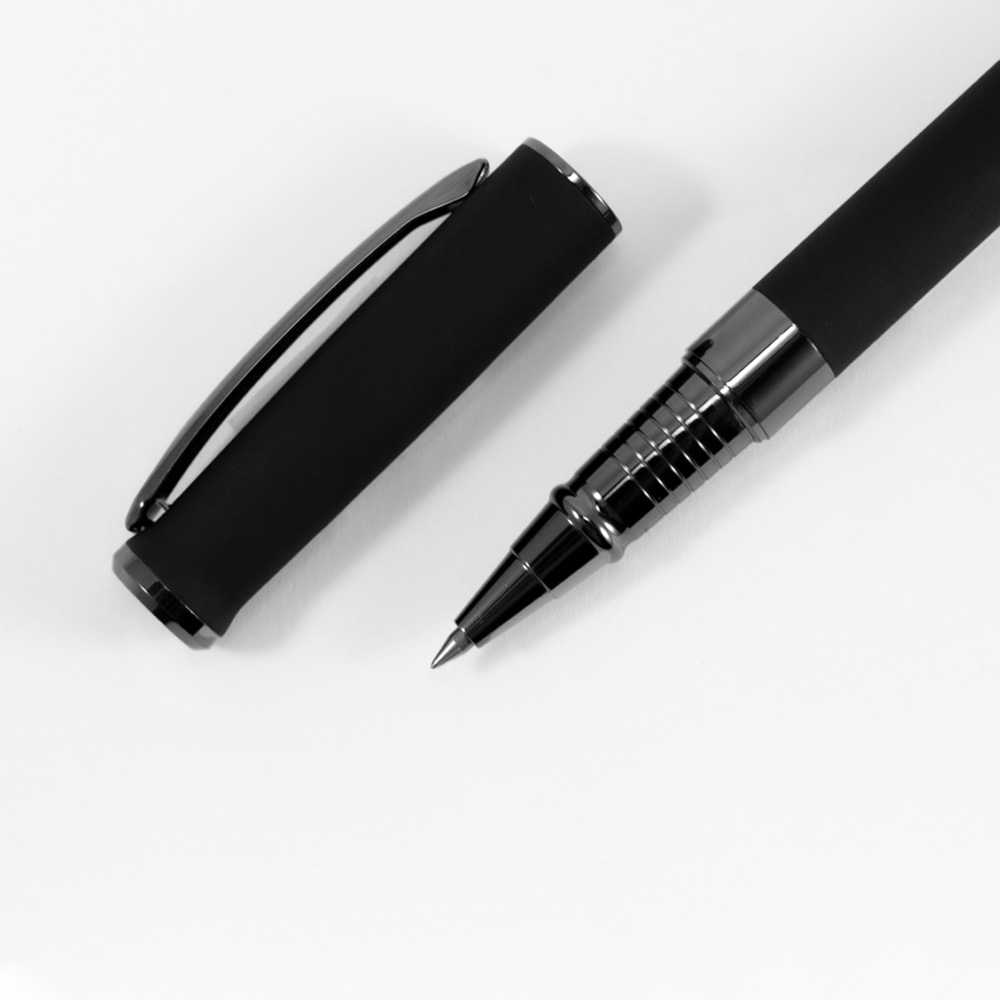 GUIZA Bolígrafo metálico con cabado rubber tipo Roller. Incluye estuche.
