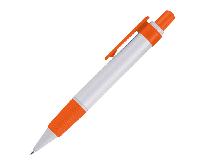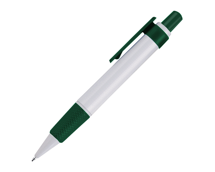 CYPRUS - Bolígrafo plástico con cuerpo en color blanco, grip antideslizante y clip de color. Mecanismo de click.