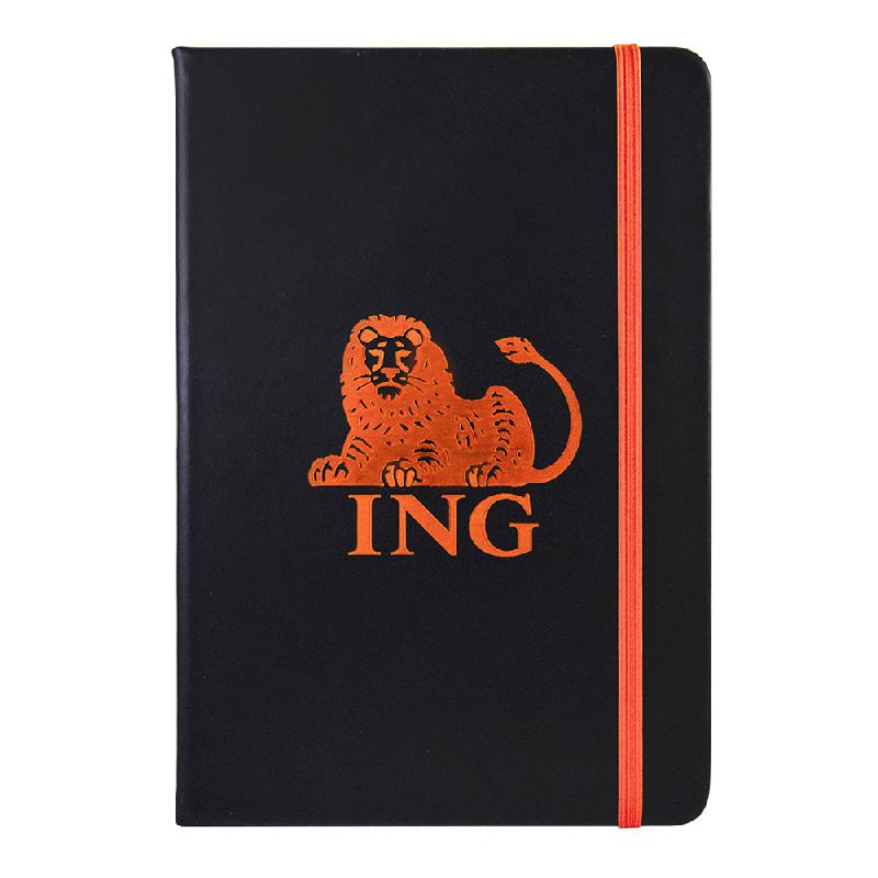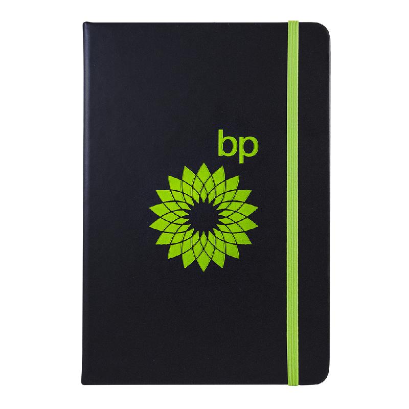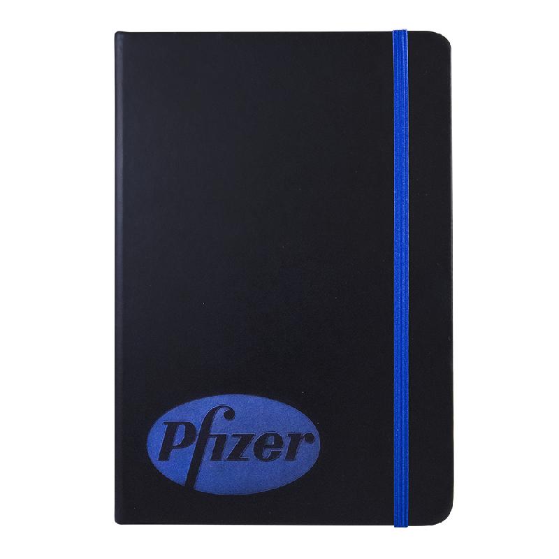 NOVARA Libreta con cubierta dura de PU, banda elástica, separador y 80 hojas rayadas. Recomendamos grabar en láser para que su logo destape a color. - MEDIDAS: 14,2 x 21,1 x 1,6 cm