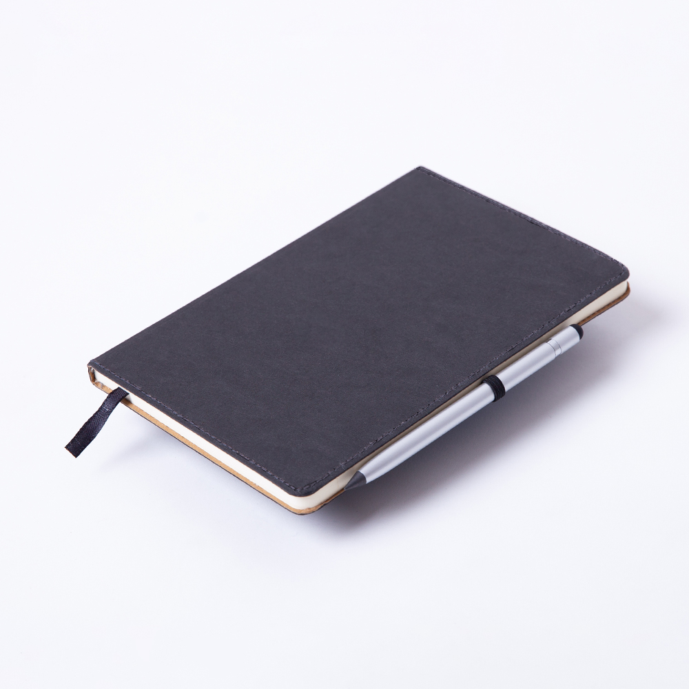 TALLIN Libreta ecológica elaborada con cubierta dura de papel Kraft lavable. Porta bolígrafo y separador; con 80 hojas rayadas.