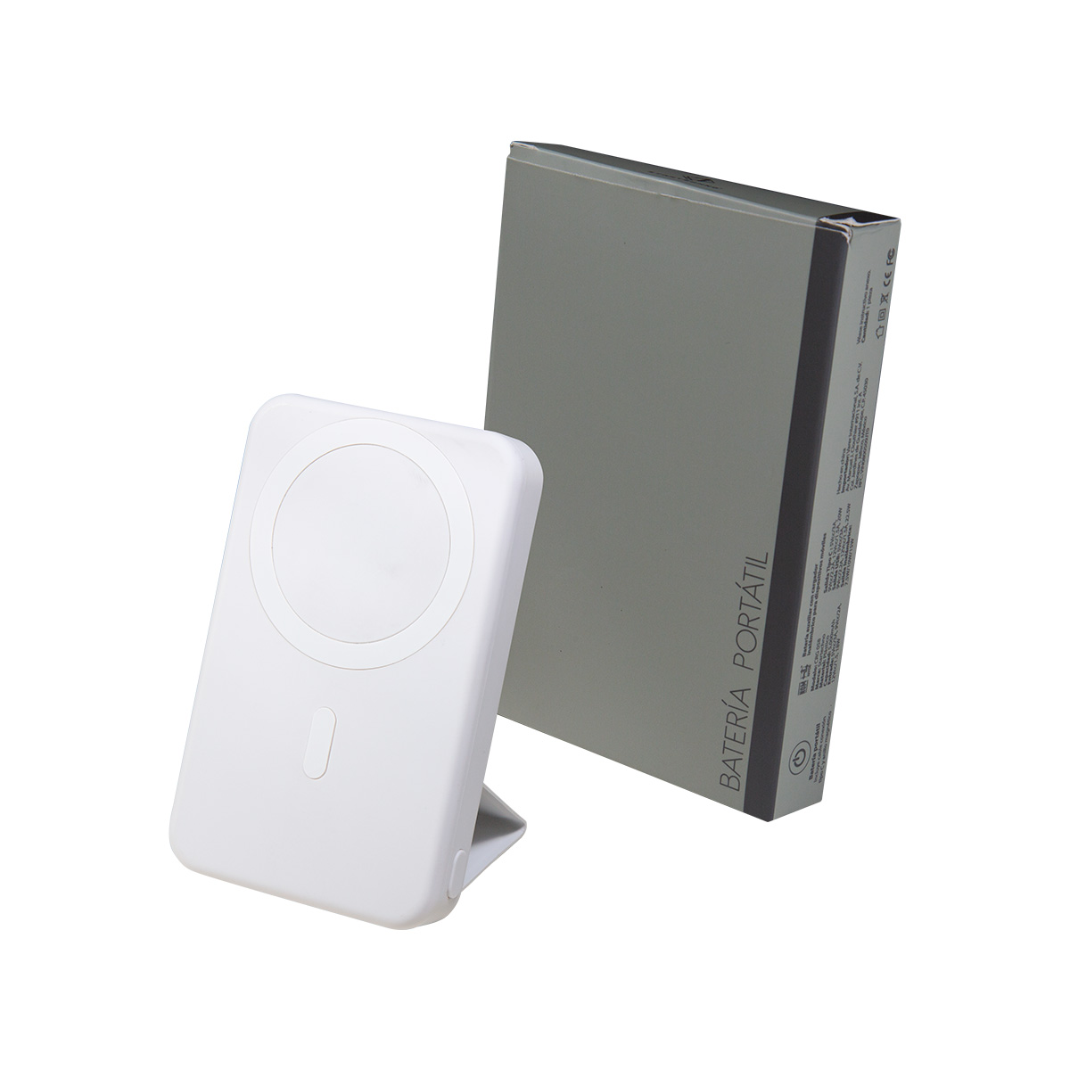 POWER BANK CARIKO - Batería auxiliar para smartphone de 5,000 mAh, con terminado rubber y cargador inalámbrico magnético. Incluye solapa plegable con puntas imantadas que funciona como soporte. Cuenta con un puerto USB y un puerto tipo C, compatible para carga de dispositivos y recarga de la batería, con salida de 7.5W / 10W / 15W. Incluye botón de encendido, display indicador de carga, cable cargador tipo C y caja individual.