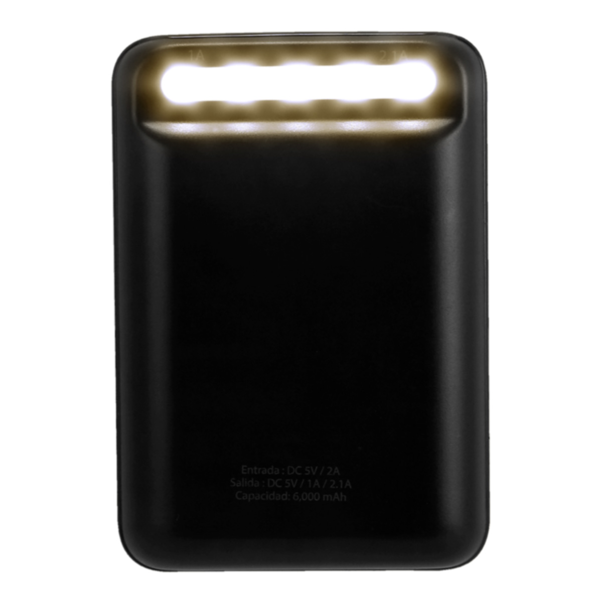POWER BANK NIPET - Batería auxiliar para smartphone con linterna LED, capacidad 6,000 mAh y 4 LEDs indicadores de carga. Cuenta con 2 salidas USB y entrada micro USB. Incluye cable cargador compatible con USB y micro USB. Este producto por ser últimas piezas puede presentar alguna variación, no se aceptan devoluciones.