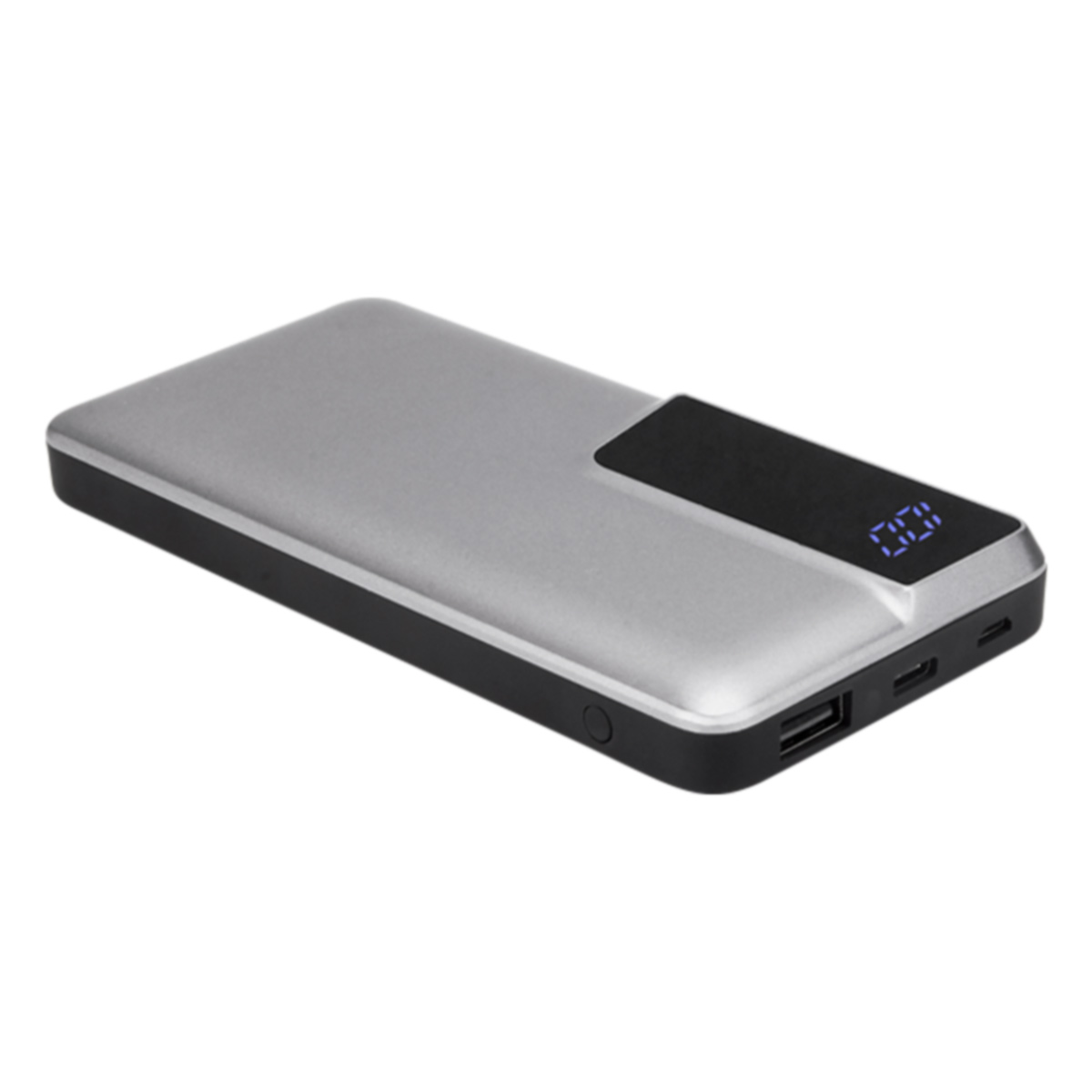 POWER BANK BRESLAVIA - Batería auxiliar para smartphone, capacidad 10,000 mAh. Cuenta con una salida USB, entrada micro USB y tipo C exclusivo para recarga de la batería (no carga dispositivos). Display para mostrar el nivel de batería. Incluye cable cargador compatible con USB y micro USB.