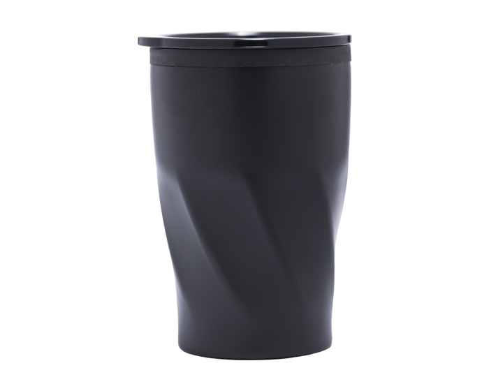 BLIZAN M - Termo de acero inoxidable acabado mate con interior de plástico. Cuenta con tapa de cierre a presión y seguro deslizable en color negro. Diseño poligonal. CAP. 350 ml.