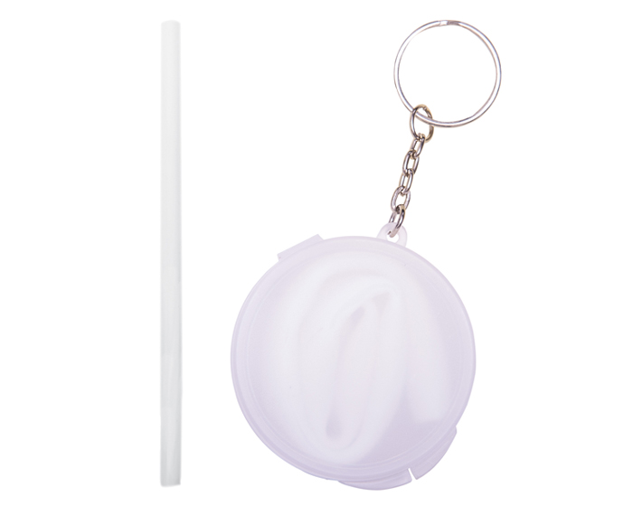 TUBBS - Popote flexible con cuerpo de color. Cuenta con estuche traslúcido y arillo metálico de llavero.