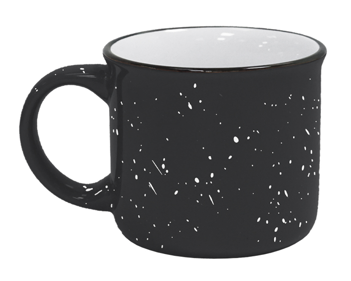 KOPAL - Taza de cerámica tipo peltre de boca abierta con filo negro. Exterior de color e interior blanco liso. CAP. 14 OZ. Venta en múltiplos de 12.