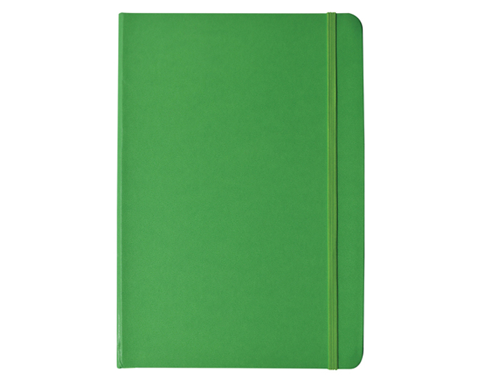 STENA - Libreta de pasta dura plastificada tamaño A5, 80 hojas rayadas (160 páginas). Incluye separador de listón y banda elástica para sujetar la cubierta y bolígrafo (no incluído).