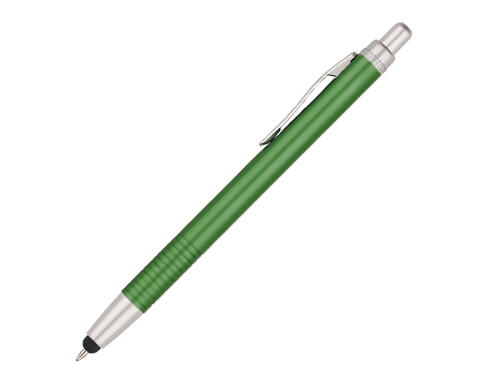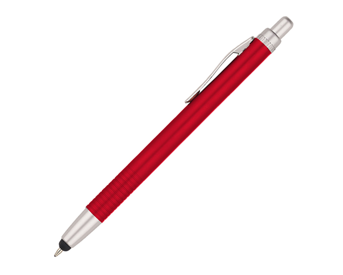 BRAD - Bolígrafo de aluminio con punta touch para pantallas táctiles. Cuenta con botón, clip y punta en color plata, cuerpo en diferentes colores y pequeñas hendiduras en la parte inferior para una mejor sujeción. Mecanismo de click.