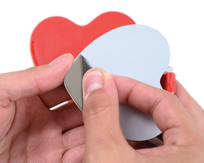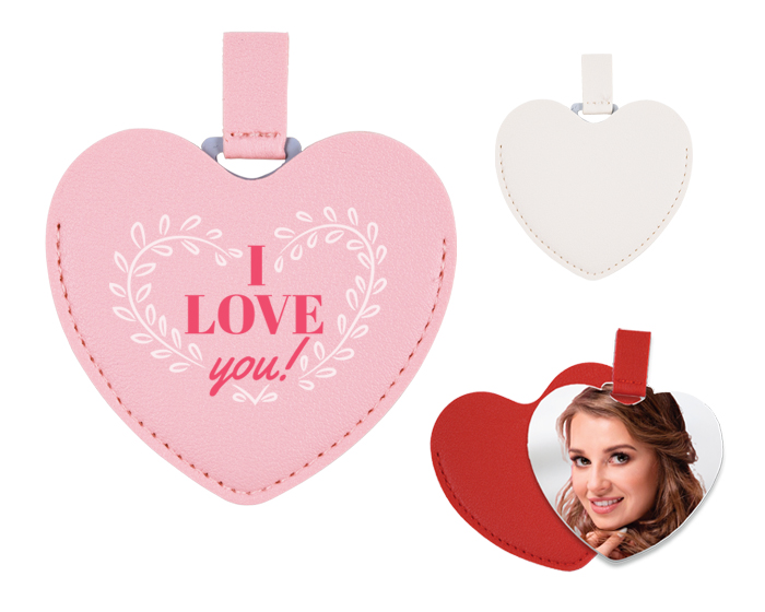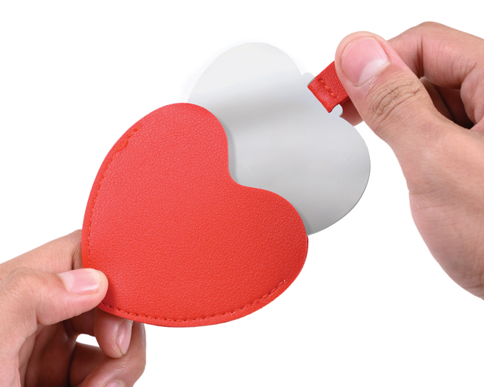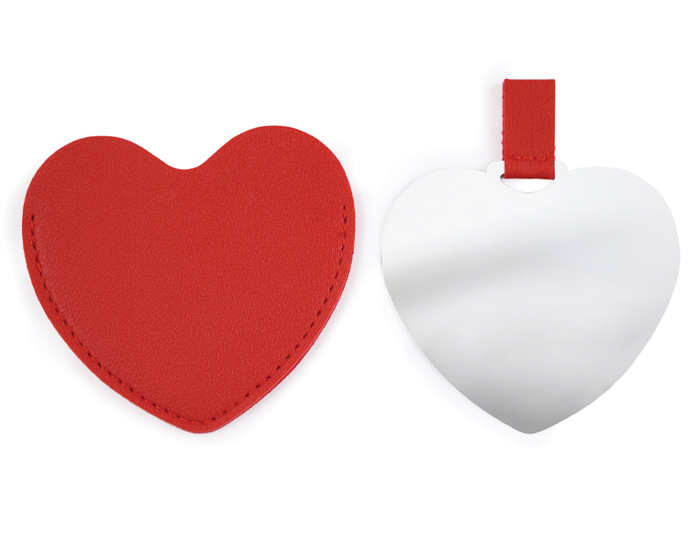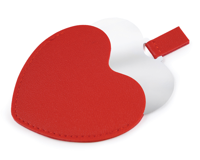 MINNIE - Espejo de acero inoxidable con cintillo y funda de poliuretano en forma de corazón.