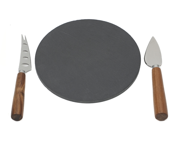 MATERIAL: Tabla: Piedra // Cuchillos: Acero inoxidable / madera de acacia. MEDIDAS: 19.5 x 25.5 x 2.6 cm IMPRESION: GL MED. EMPAQUE: 41.5x 28.5 x 28.5 cm PESO EMPAQUE: 12.2 kgs PIEZAS EMPAQUE: 20