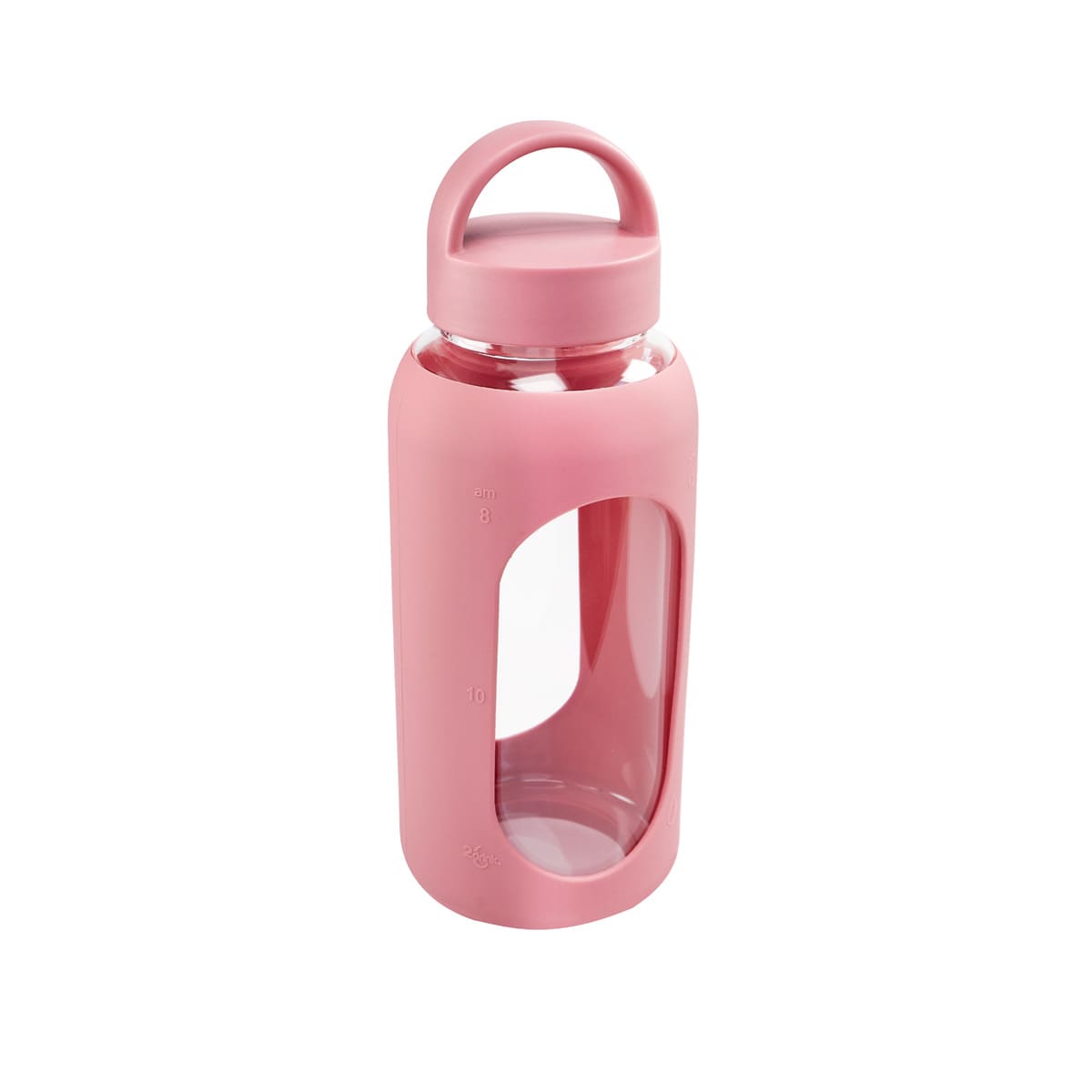 CILINDRO DE VIDRIO IDARA - Cilindro de vidrio con manga de silicón graduada en ml. Tapa de plástico con sistema de rosca y asa. Vidrio resistente a bebidas calientes y frías. Incluye caja individual.