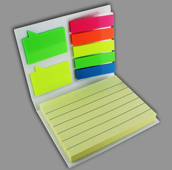 Estuche con notas adhesivas y banderas de colores pasta dura