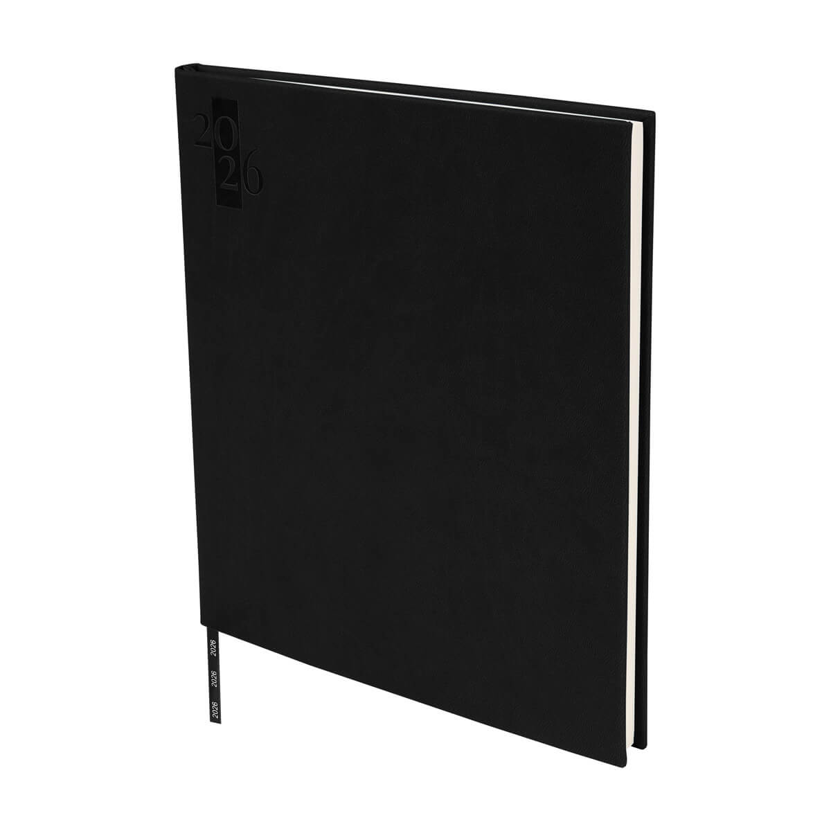 AGENDA EJECUTIVA CLÁSICA 2026 - Agenda semanal con 80 hojas. Contiene datos personales, calendarios 2025-2026-2027, planeador 2026, presupuesto de gastos, seguimiento de nuevos hábitos, organizador de tareas, planeador de proyecto y días festivos. Incluye caja individual.