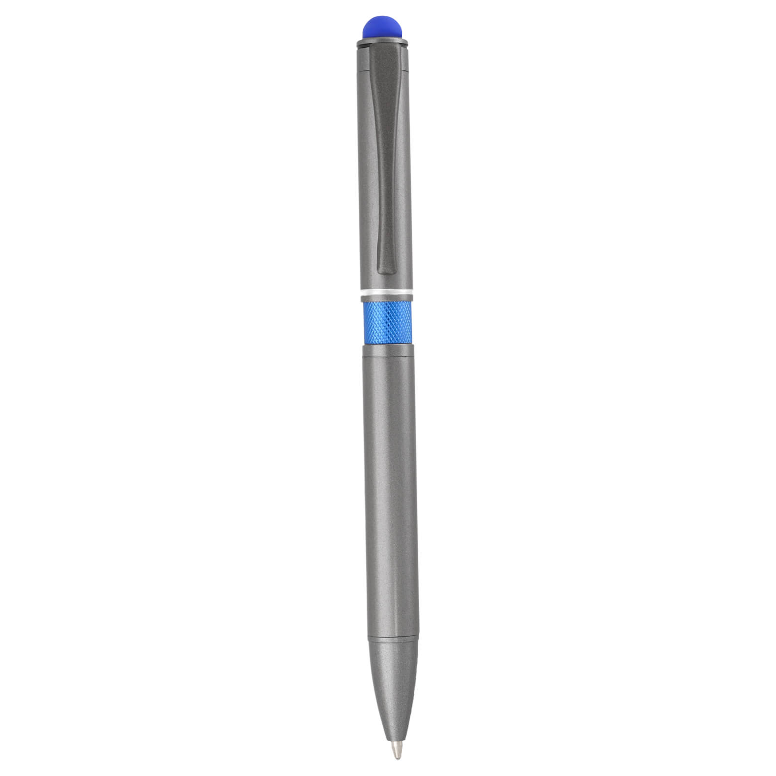 ZUG Bolígrafo metálico con detalle en el centro, clip, goma touch screen y mecanismo de click.