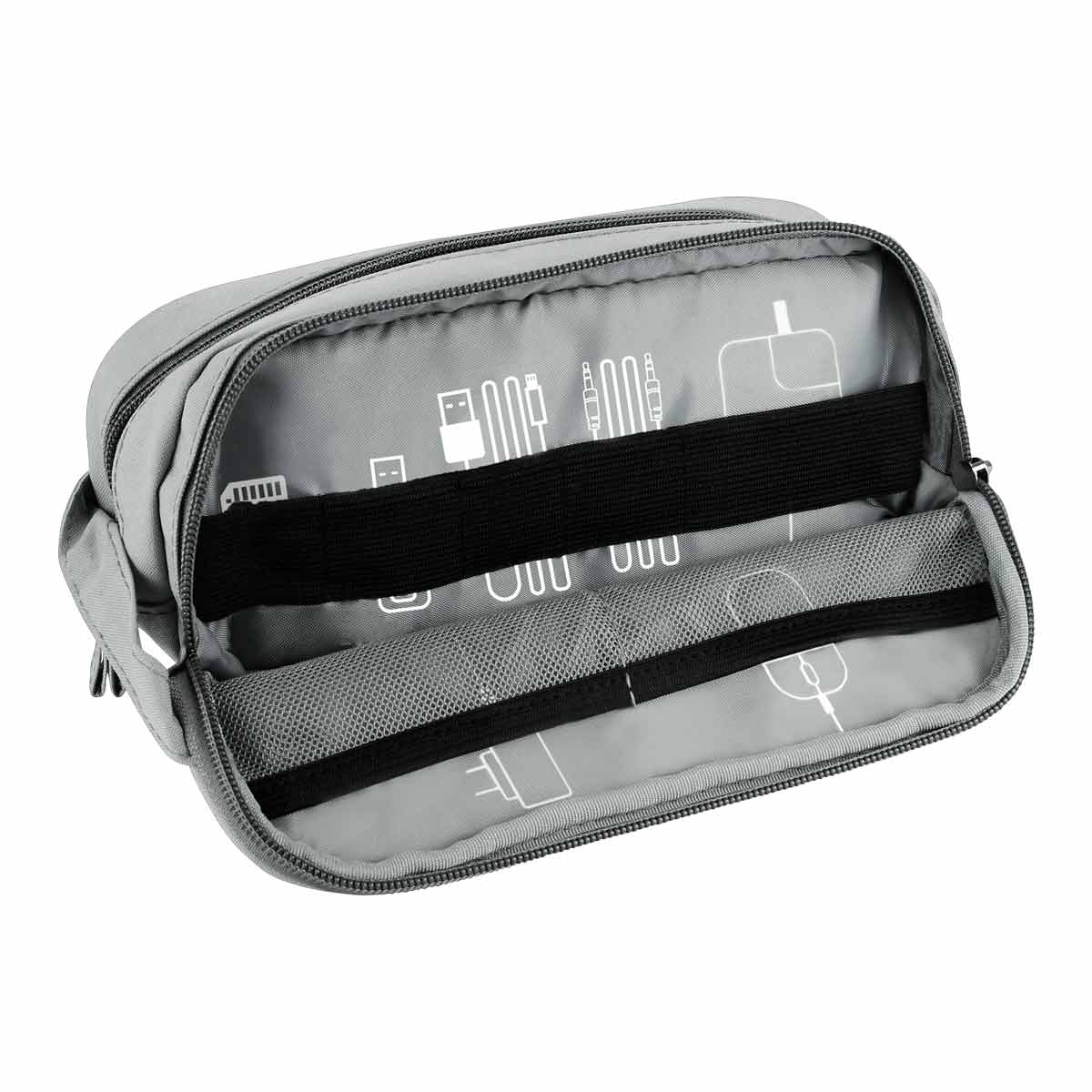 ORGANIZADOR BÁRIK - Organizador para accesorios de tecnología con dos compartimentos. Cuenta con divisiones para guardar memoria Micro SD, USB, cables, cargadores, cámara, mouse, etc.