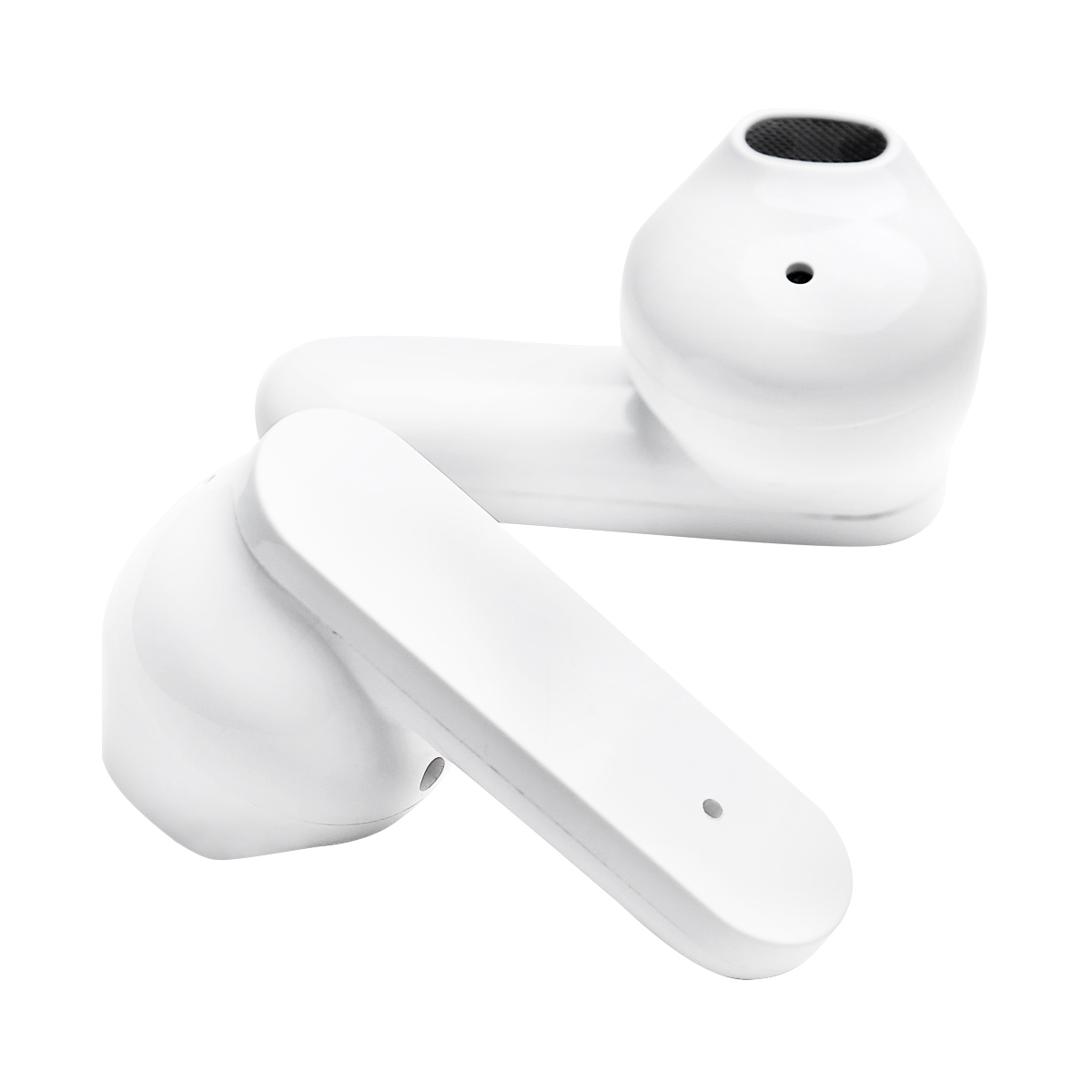 AUDÍFONOS MIGA - Audífonos bluetooth inalámbricos con base recargable. Control touch para reproducción de música y función de llamada. Reproducción de música de 3 horas aproximadamente. Rango de conexión de 10 metros. Batería de 20 mAh (audífonos) y 180 mAh (estuche). Incluye cable con puerto tipo C.