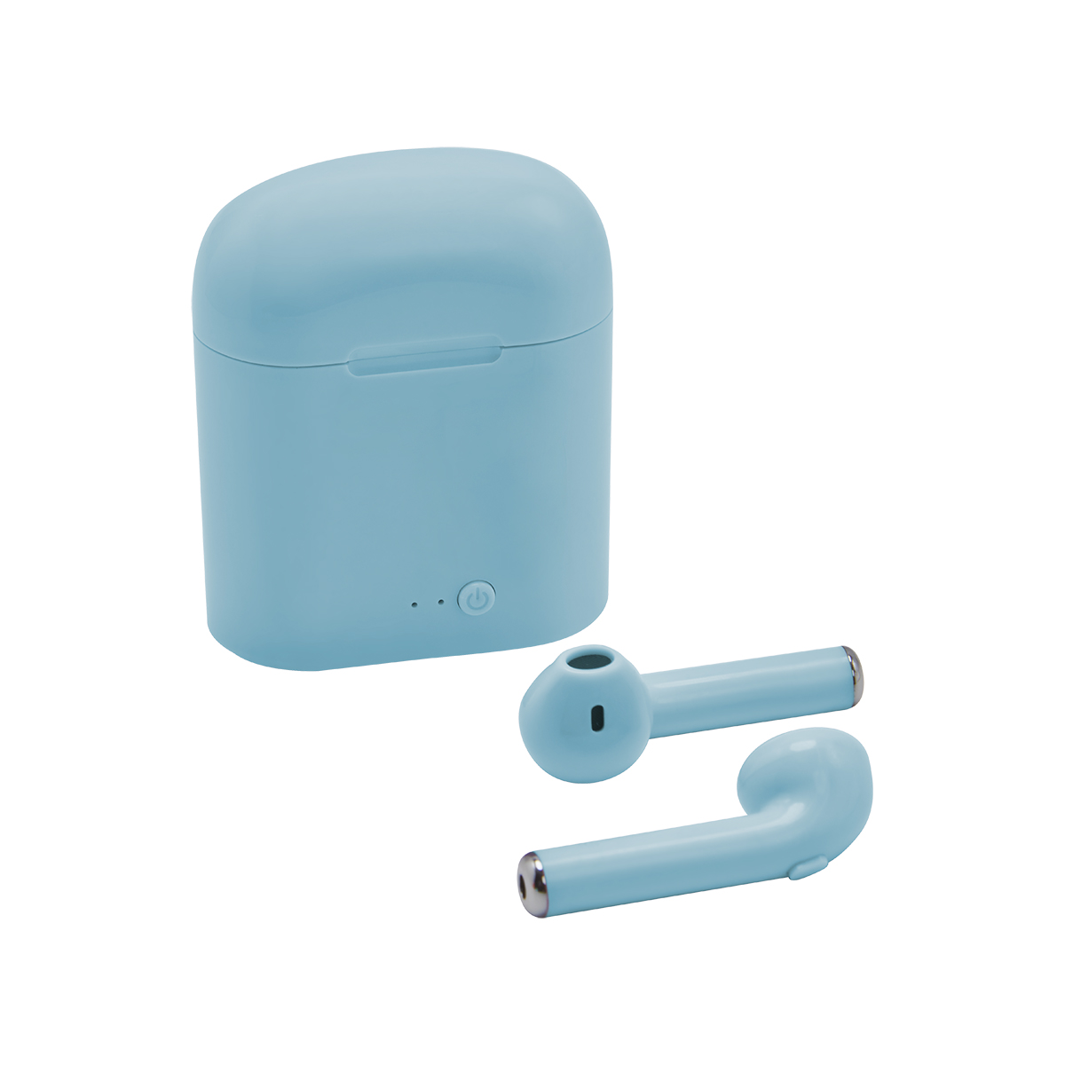AUDÍFONOS SARAJEVO - Audífonos bluetooth inalámbricos con batería recargable. Función manos libres. Reproducción de música 2 hrs aproximadamente. Incluye estuche para recargar los audífonos y cable cargador USB.