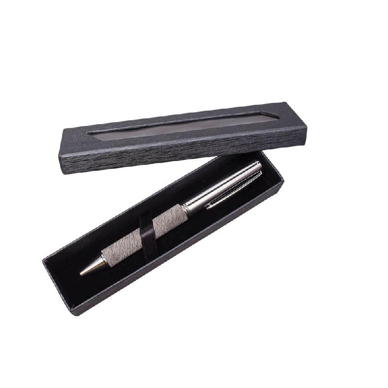 Bolígrafo metálico con terciopelo y acabado cromado. Medidas: 14 x 1 cm Material: Metal. Empaque: Caja de cartón.