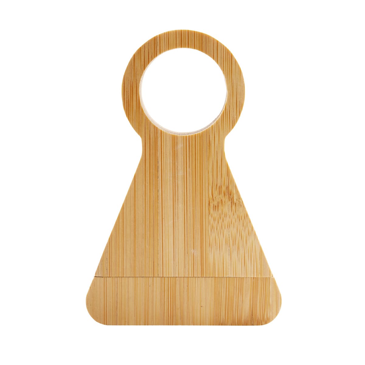 SOPORTE SACACORCHOS RÓDANO - Práctico sacacorchos con destapador. Cuenta con una innovadora función de soporte para botellas imantado, su diseño con troquelado redondo permite apoyar la botella de manera segura. Adicional, en la parte posterior incluye un destapador metálico, logrando un complemento perfecto. La madera es un producto natural el cual puede presentar variaciones en tonalidades y vetas.