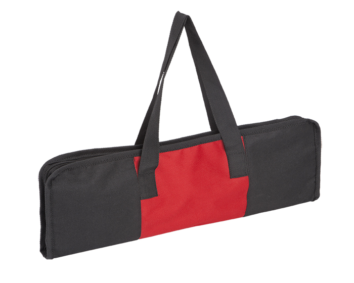 MATERIAL: Accesorios: Acero Inoxidable // Estuche: Poliéster MEDIDAS: 39 x 13.3 x 4 cm IMPRESION: SE DTFT MED. EMPAQUE: 41 x 40 x 19 cm PESO EMPAQUE: 10.5 kg PIEZAS EMPAQUE: 20