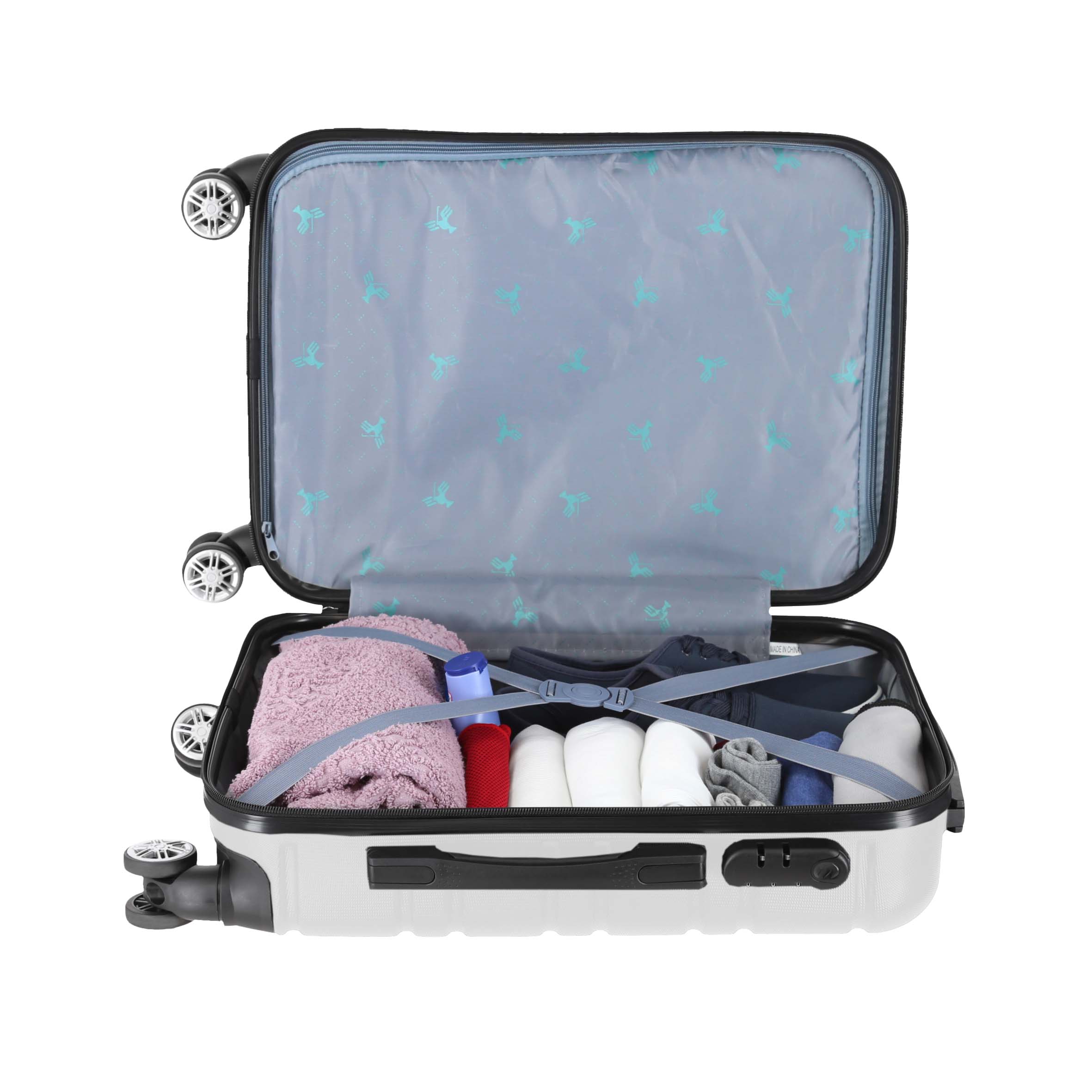 ODYSSEY Maleta de plástico para viaje, con doble rueda giratoria, asa metálica retráctil y candado de seguridad.