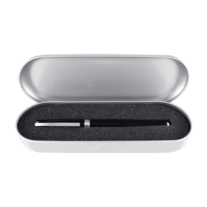 Bolígrafo metálico Praga. - Bolígrafo metálico Roller Ball de tinta negra, con escritura fluida. Incluye estuche de metal, ideal para regalo ejecutivo o corporativo.