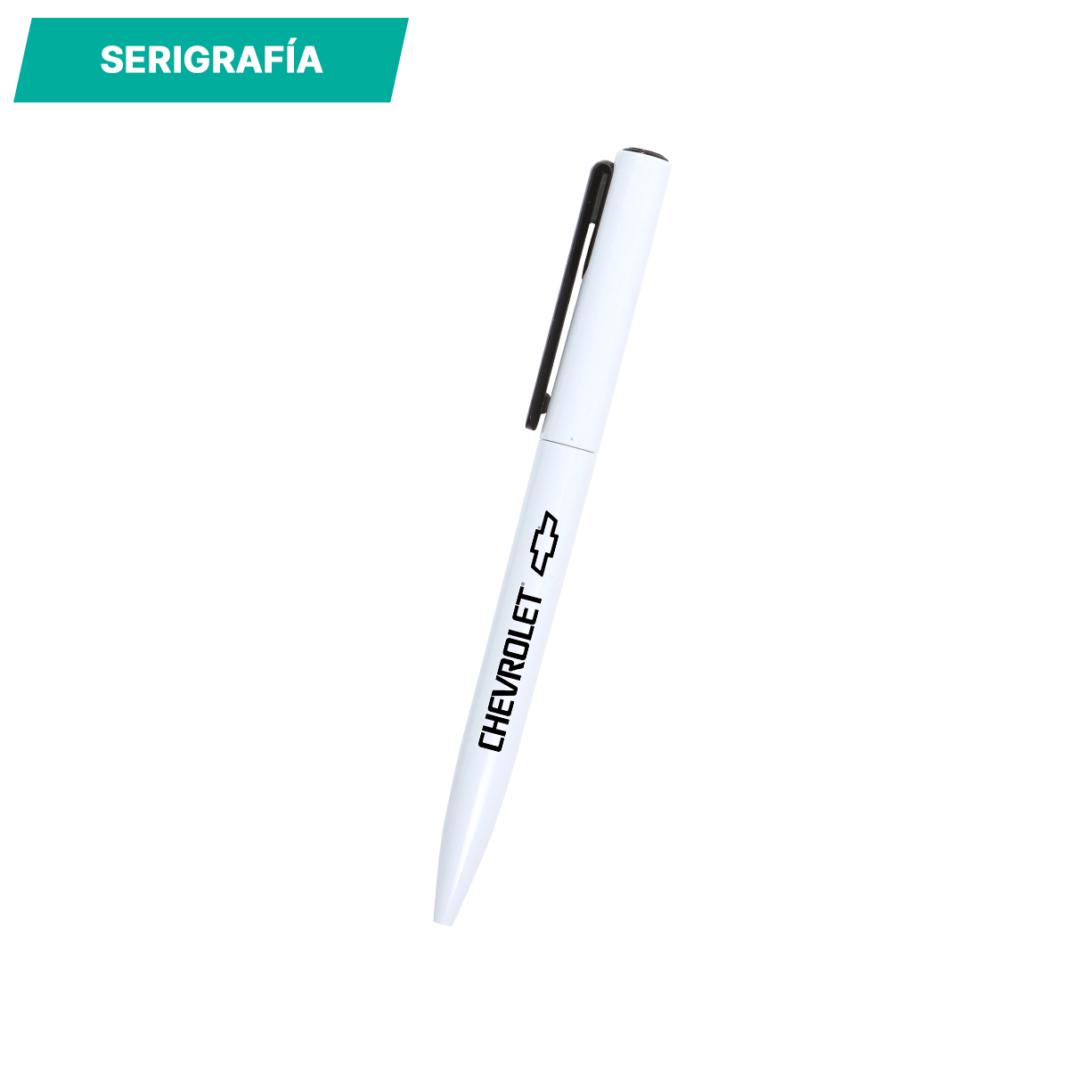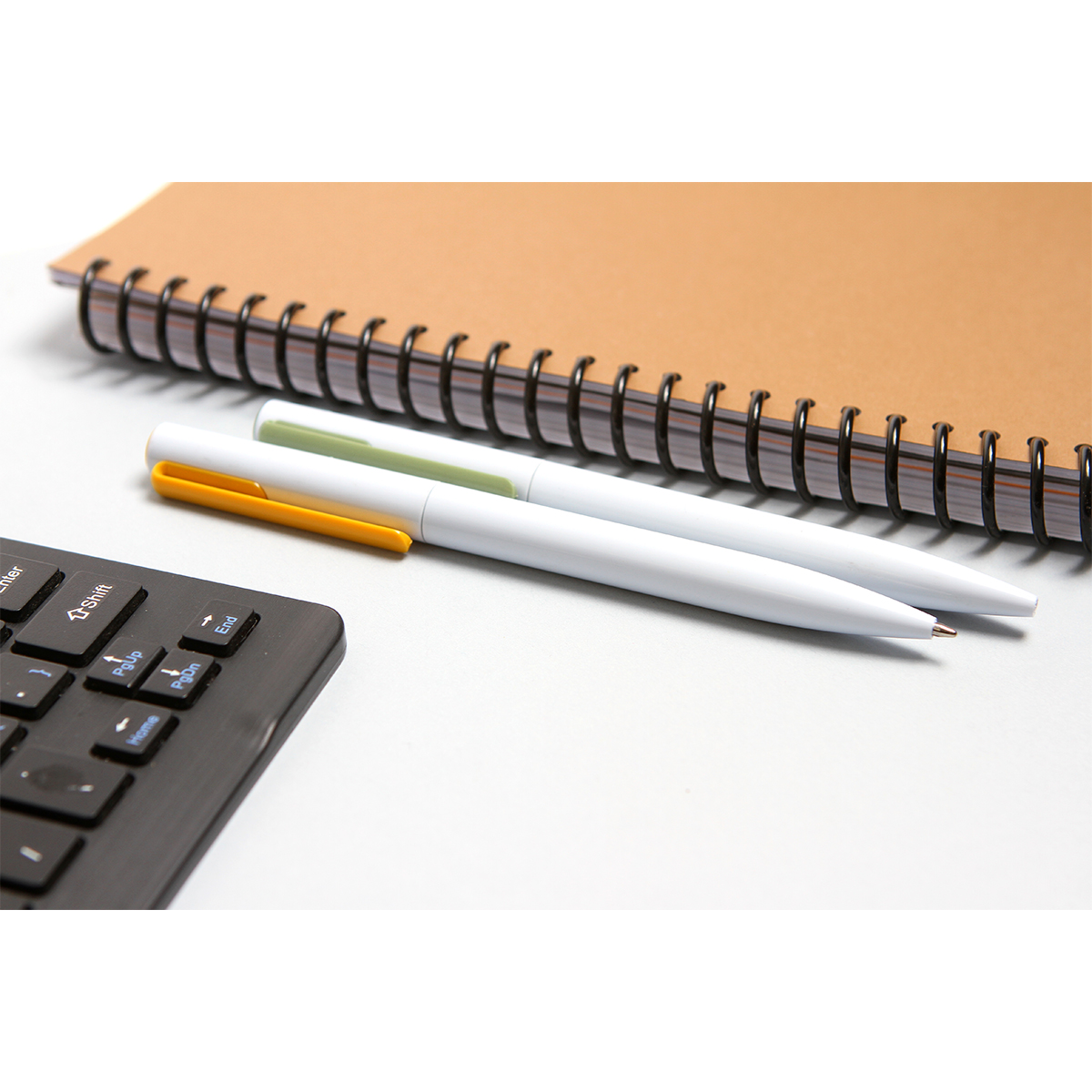 Bolígrafo Órebro. - Bolígrafo de acción giratoria, cuerpo blanco sólido, clip de color sólido, recarga delgada X-20. Barril fabricado en ABS. Tinta de escritura negra.
