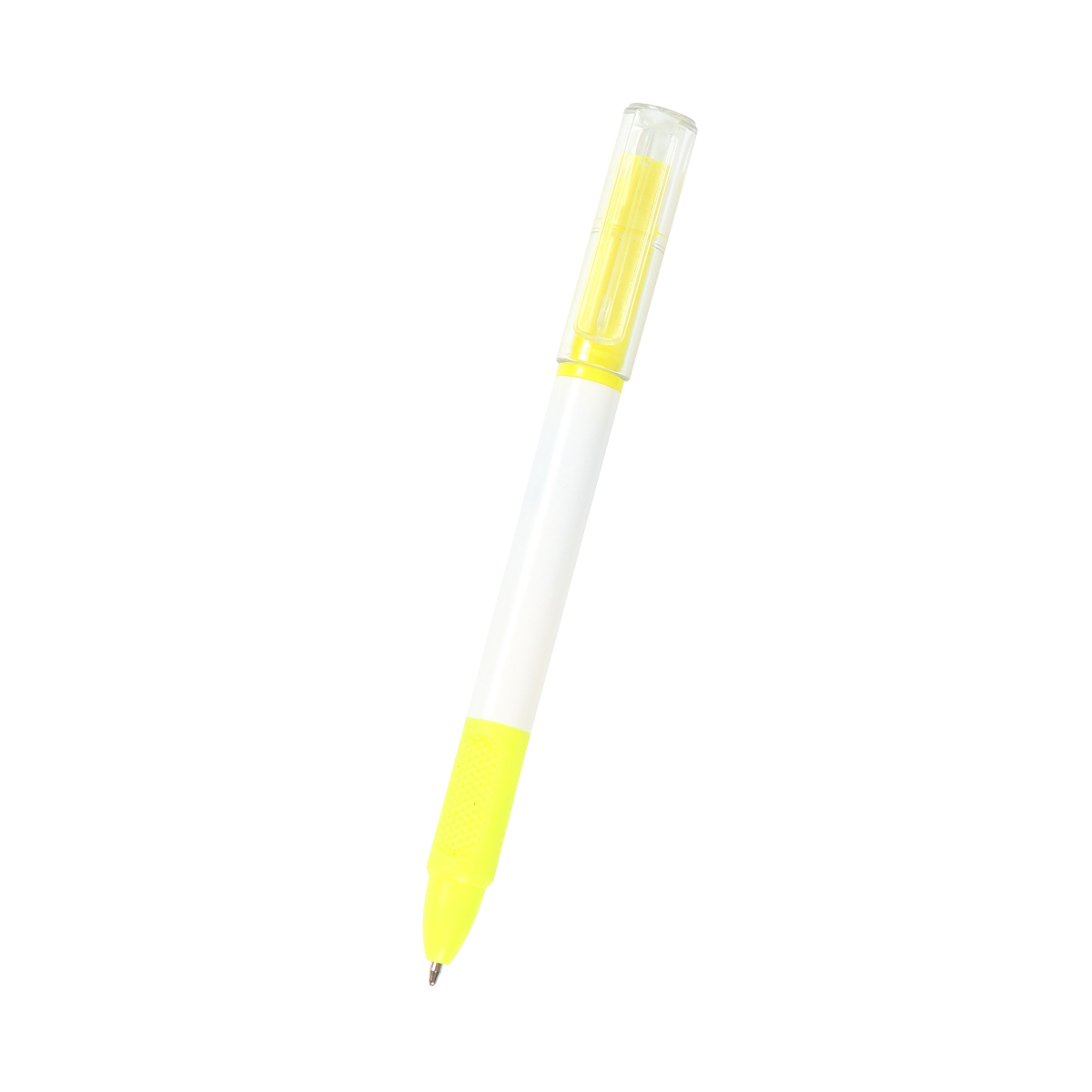 Bolígrafo Skikda. - Bolígrafo 2 en 1 con acción giratoria y marca textos con tapa traslúcida. Barril hecho de plástico reciclado ABS con detalle en goma con textura para mejor uso. Tinta de escritura negra y el marca textos hace juego según el color exterior. Combina funcionalidad y versatilidad en un solo producto.