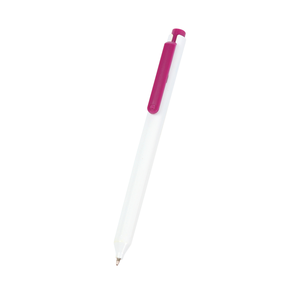 Bolígrafo Vaiges. - Bolígrafo con barril fabricado en plástico ABS color blanco y clip en diferentes colores a elegir, mecanismo de botón. Tinta de escritura negra.