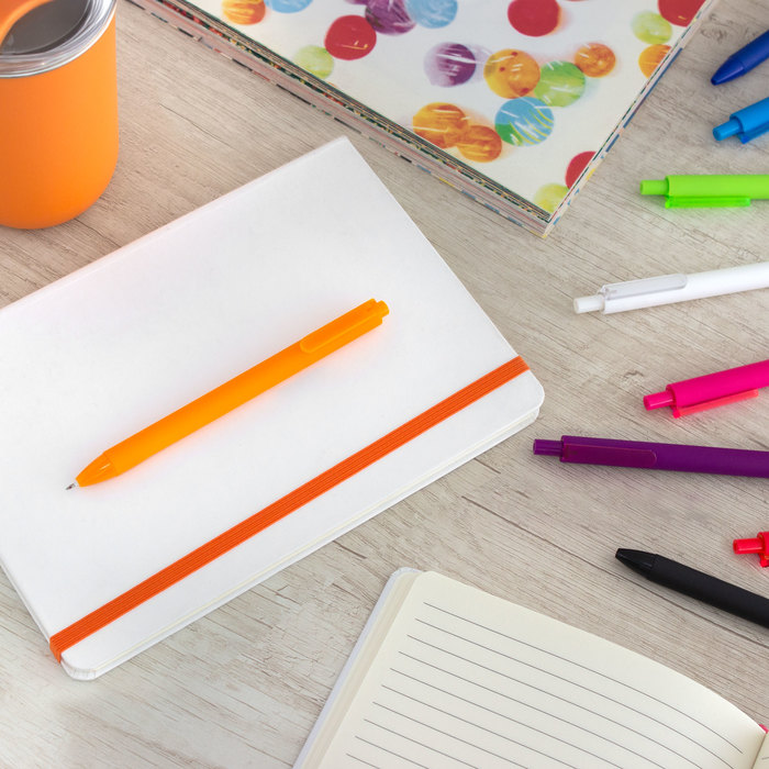 Bolígrafo "PLAIN" Bolígrafo retráctil con tinta gel. Cuerpo de diferentes colores con acabado mate suave al tacto. Pulsador y puntera del mismo color del cuerpo acabado brillante. Clip translúcido del mismo color del cuerpo.