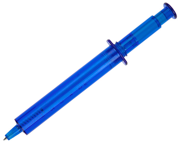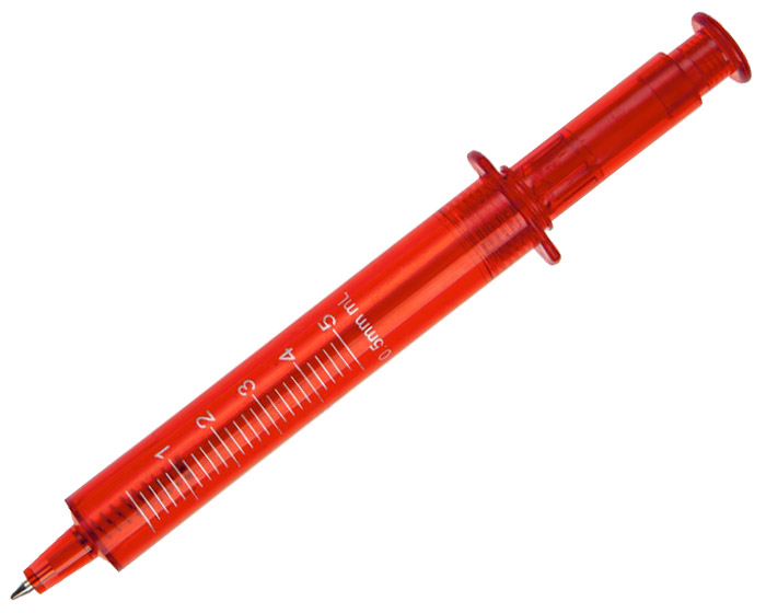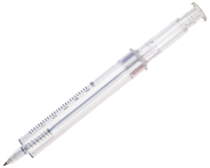 JERINGA - Bolígrafo en forma de jeringa con cuerpo traslúcido. Mecanismo de click.