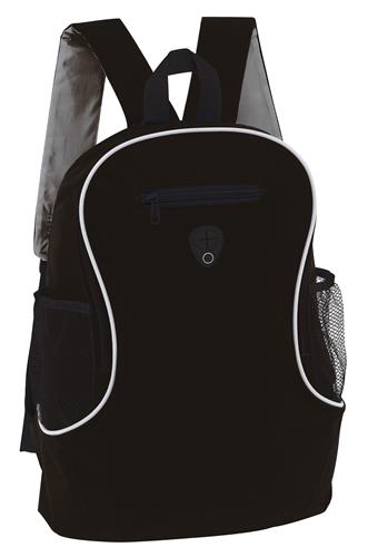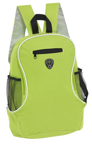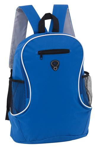 MOCHILA "TRACK" Compartimento principal con bolsillo frontal con cierre. Dos bolsillos laterales de red porta bebidas. Correas ajustables. Cierres metálicos. Salida para audífonos.