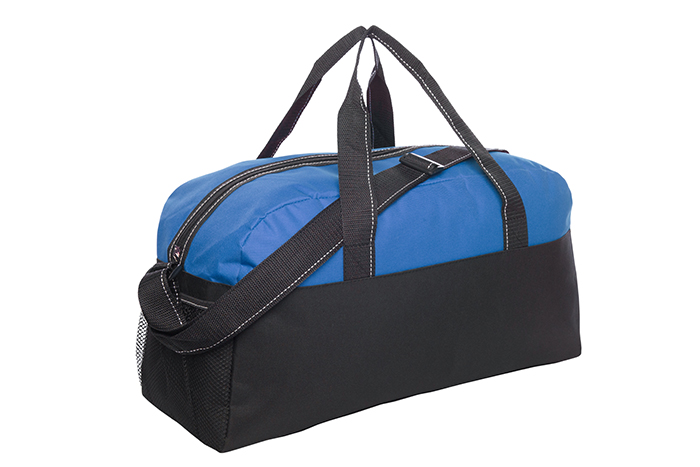 BOLSO DEPORTIVO "BEPT" Bolso con bolsillos de redes en los laterales. Dos manijas, correa ajustable y cierre principal con vivos en color blanco.