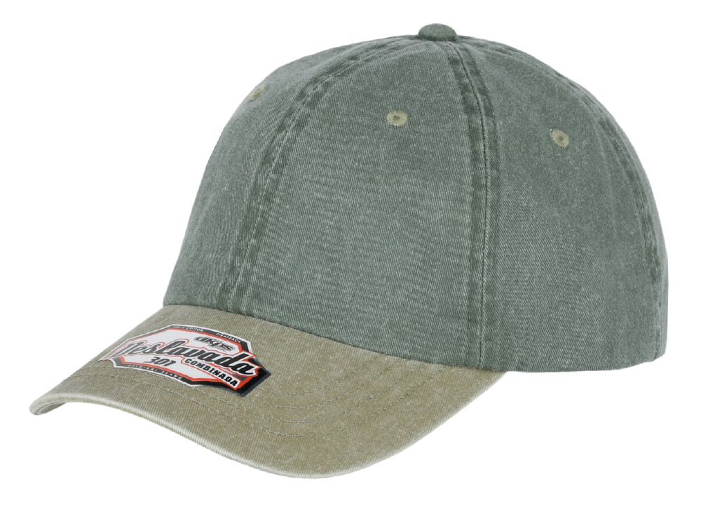 DKPS #301 GORRA DESLAVADA COMB OLIVO UN GAB PIGMENTADA 100% ALG. AJUSTE VELCRO