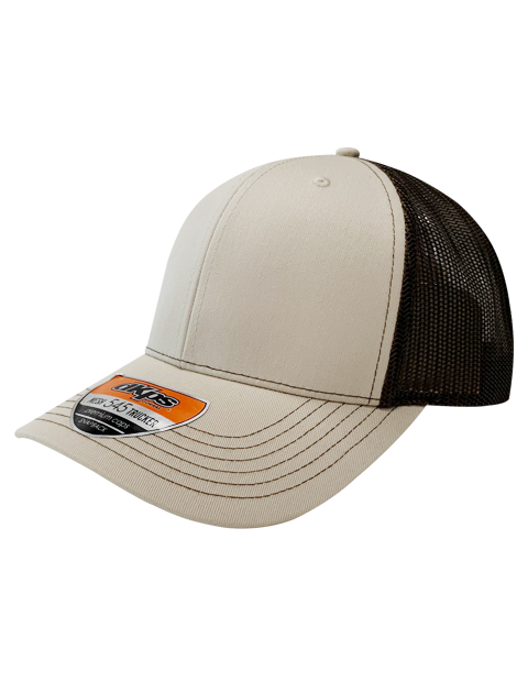 DKPS #545 GORRA MESH BEIGE, ALG 50% POL 50%, MALLA PREMIUM 6 GAJOS, AJUSTE PLASTICO