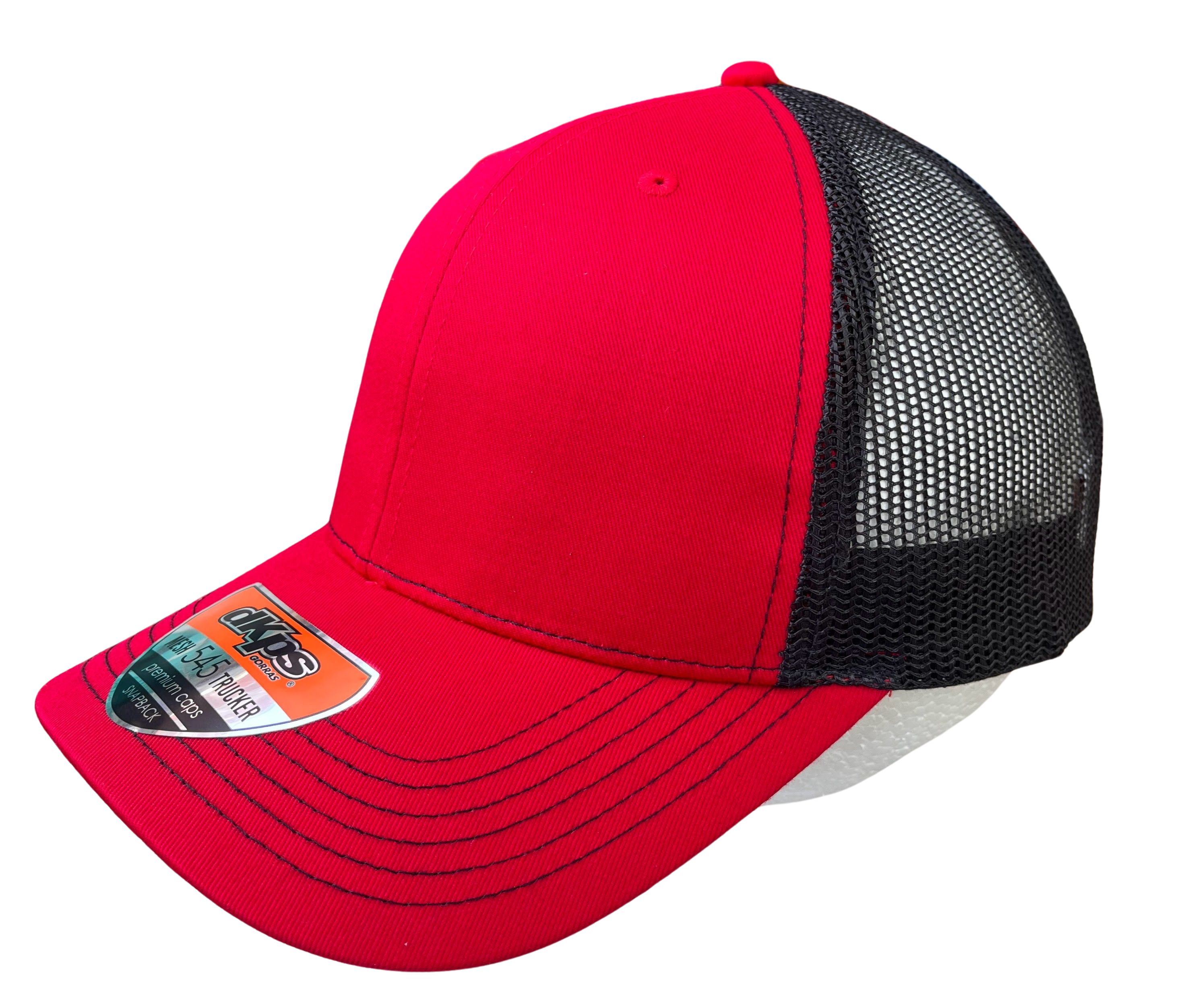 DKPS #545 GORRA MESH ROJO/NEGRO, ALG 50% POL 50%, MALLA PREMIUM 6 GAJOS, AJUSTE PLASTICO