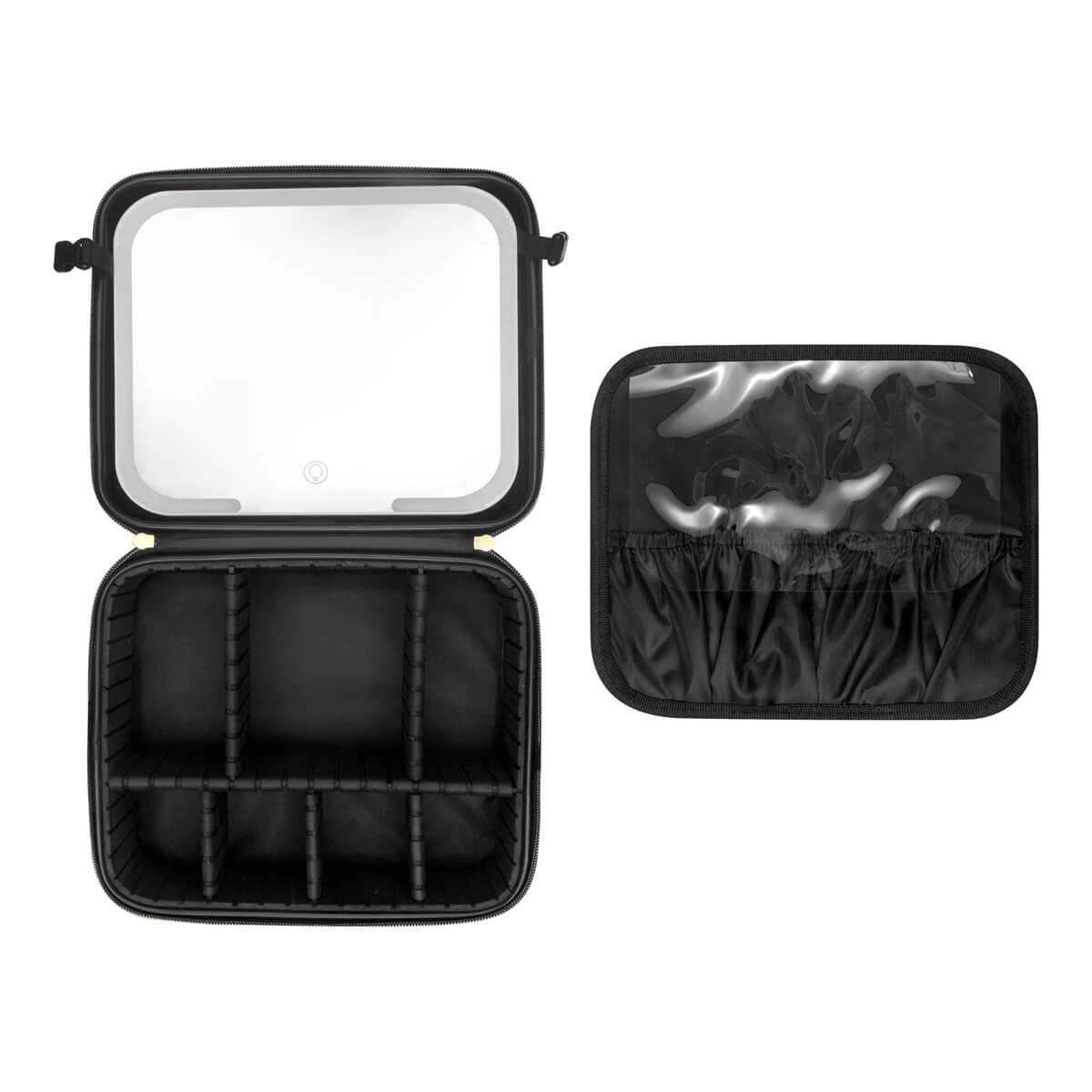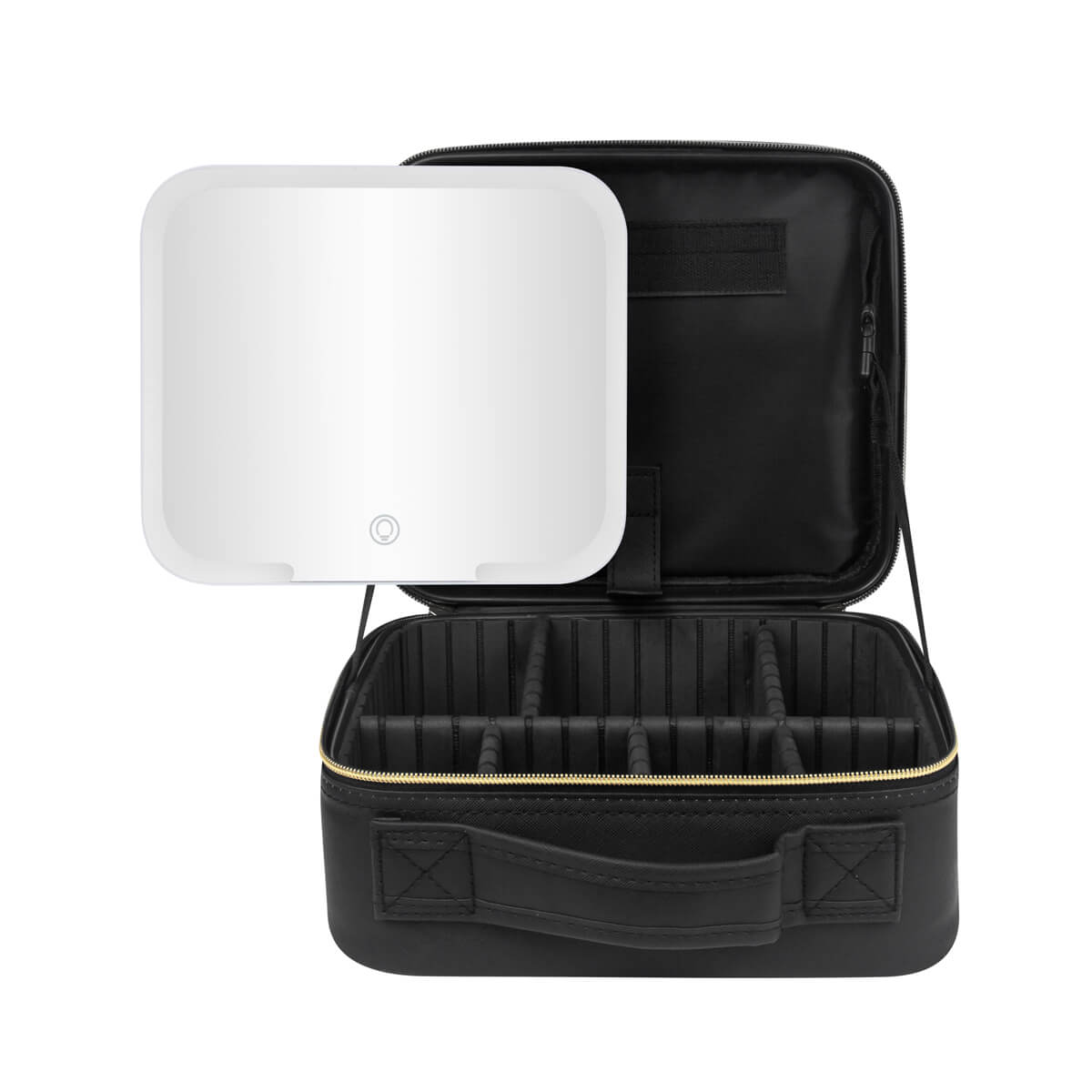 COSMETIQUERA KAELIS - Organizador de maquillaje y brochas. En su interior contiene un amplio espejo de iluminación LED con 3 modos de luz: fría, natural y cálida, las cuales cambian pulsando el botón del sensor táctil one touch. Duración de luz 2 hrs. Puerto de carga tipo C. Incluye cable de carga tipo C.