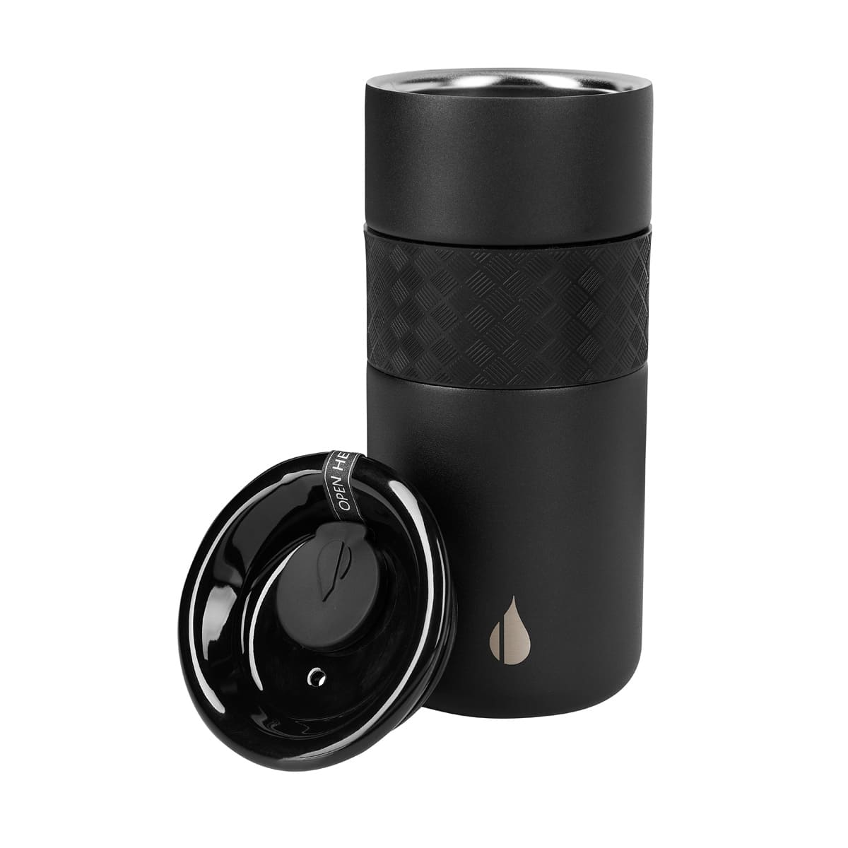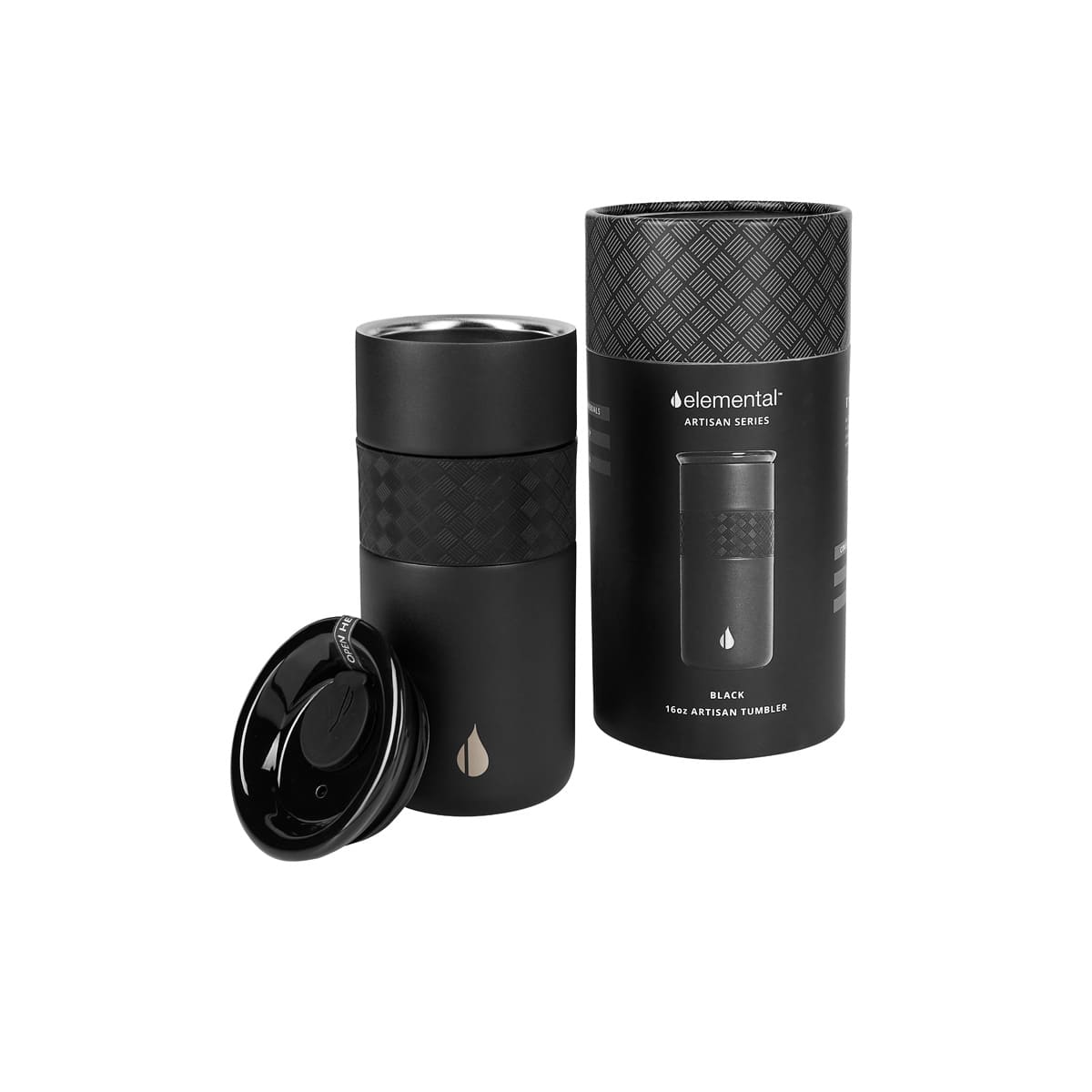 TERMO ARTISAN - Tecnología TrueBarrier™ que usa aislamiento de triple pared. Doble pared de acero inoxidable y una capa de revestimiento de cobre. Cerrado al vacío. Material BPA free. Tapa de cerámica con tapón de seguridad, su forma evita derrames y quemaduras al tomar. Banda de silicón texturizada antiderrapante. Compatible con portavasos. Base antiderrapante. Mantiene temperatura caliente 6 hrs y fría 18 hrs aproximadamente. Incluye caja individual.