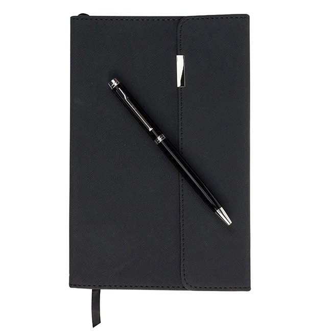 Set Estambul Set Estambul Incluye Bolígrafo y Libreta con cierre en ceja magnético, placa metálica para personalizar y cinta divisoria. Libreta con aprox. 80 hojas rayadas.