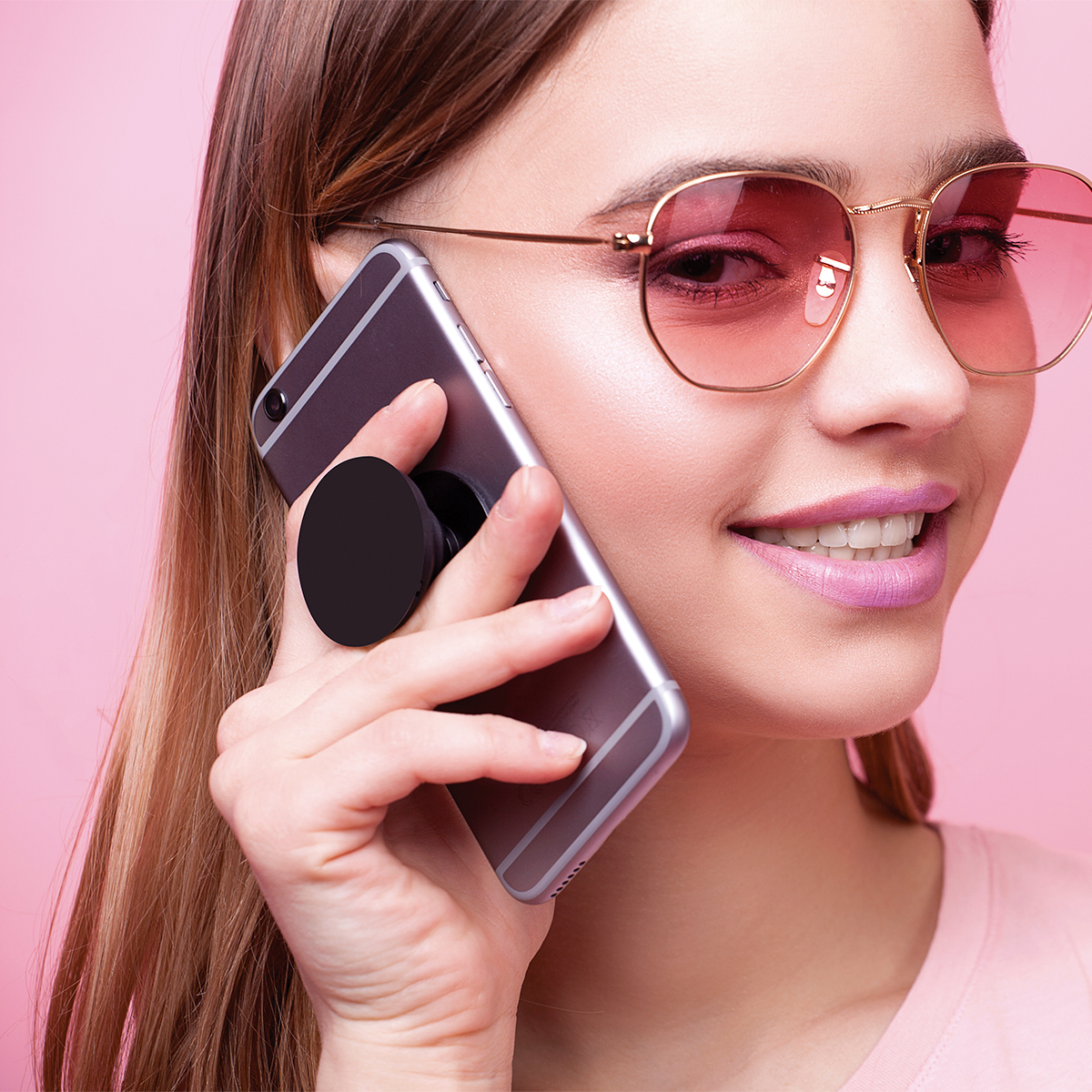 Soporte para smartphone - Soporte circular de plástico para smartphone, con adhesivo 3M que funciona también como agarradera de mano.