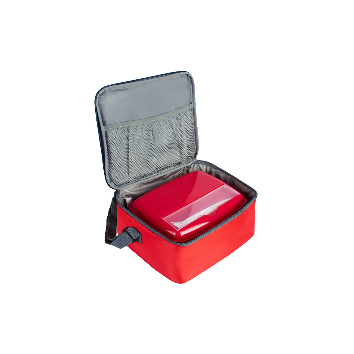 Lonchera con asa para fácil agarre, malla lateral, cierre y compartimento tran...