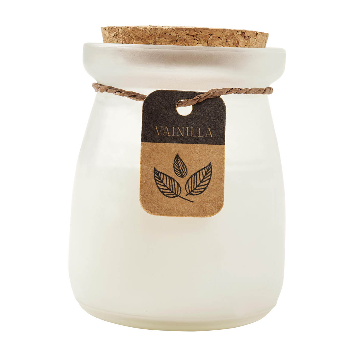 VELA VANILLE - Vela decorativa con tapa de corcho y acabado tipo frosty. A pesar de su tamaño compacto, esta vela ofrece un aroma duradero que crea un ambiente cálido y relajante. Perfecta para acompañarte en momentos de meditación, relajación o simplemente para añadir un toque de serenidad a tu hogar. Aroma a vainilla. Incluye caja individual.