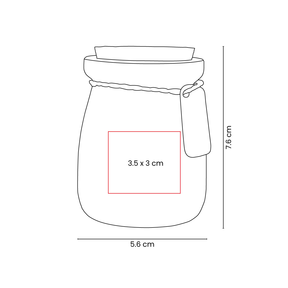 MATERIAL: Vidrio / Parafina / Corcho MEDIDAS: 5.6 x 7.6 cm IMPRESION: Tampografía / Serigrafía MED. EMPAQUE: 31 x 20 x 26.1 cm PESO EMPAQUE: 3 Kg PIEZAS EMPAQUE: 40