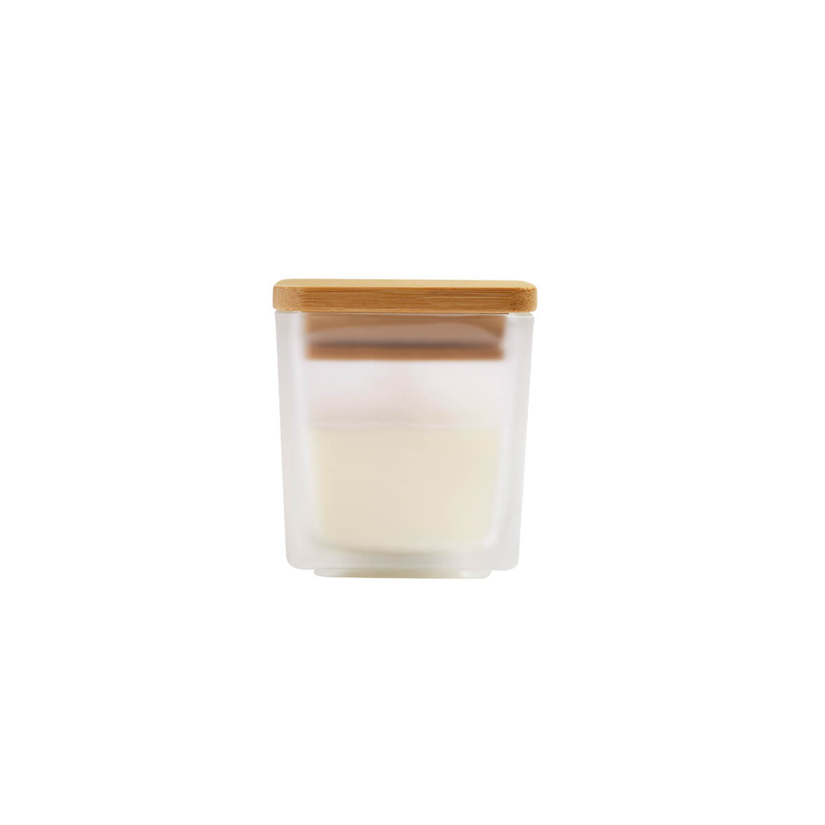 VELA ITCHI - Vela decorativa cuadrada con tapa de bambú y acabado tipo frosty. Aroma a vainilla. El bambú es un producto natural el cual puede presentar variaciones en tonalidades y vetas.